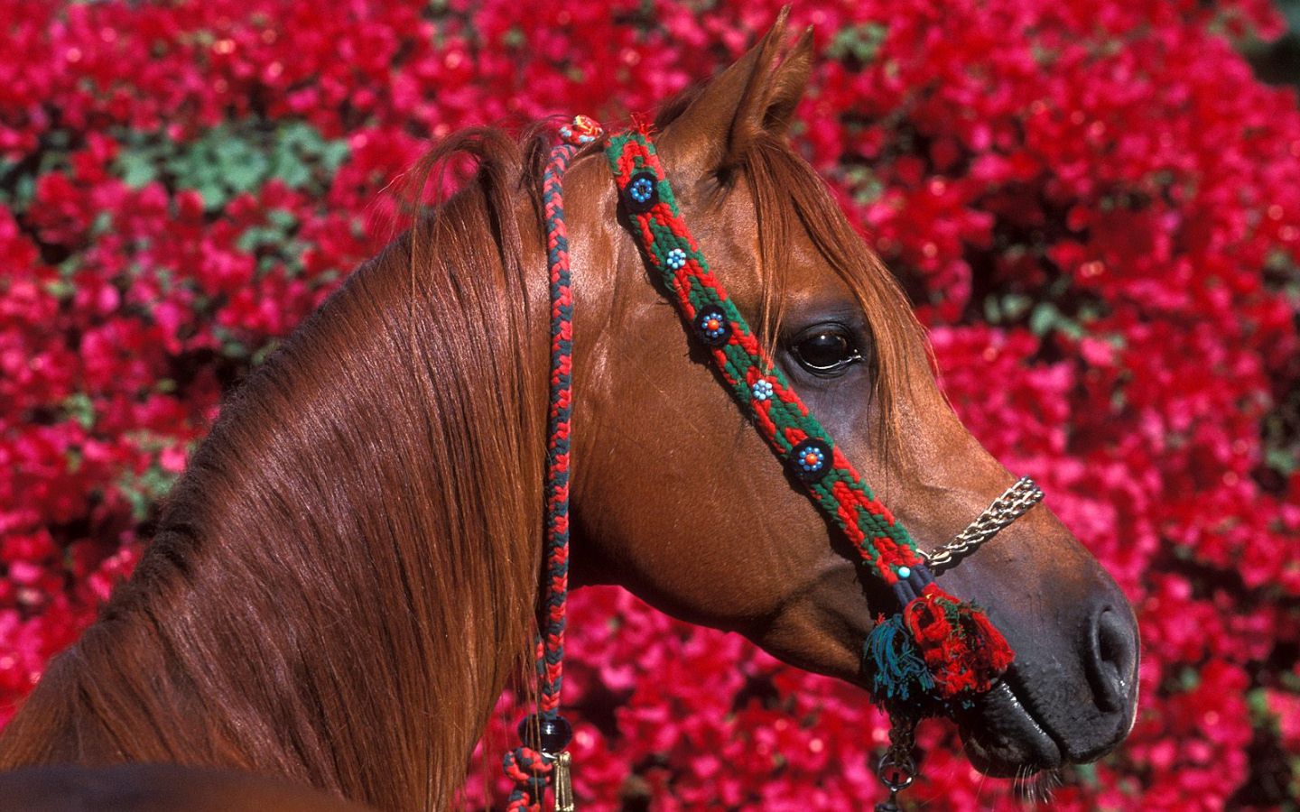 Скачать обои для рабочего стола Лошадь среди цветов и фото