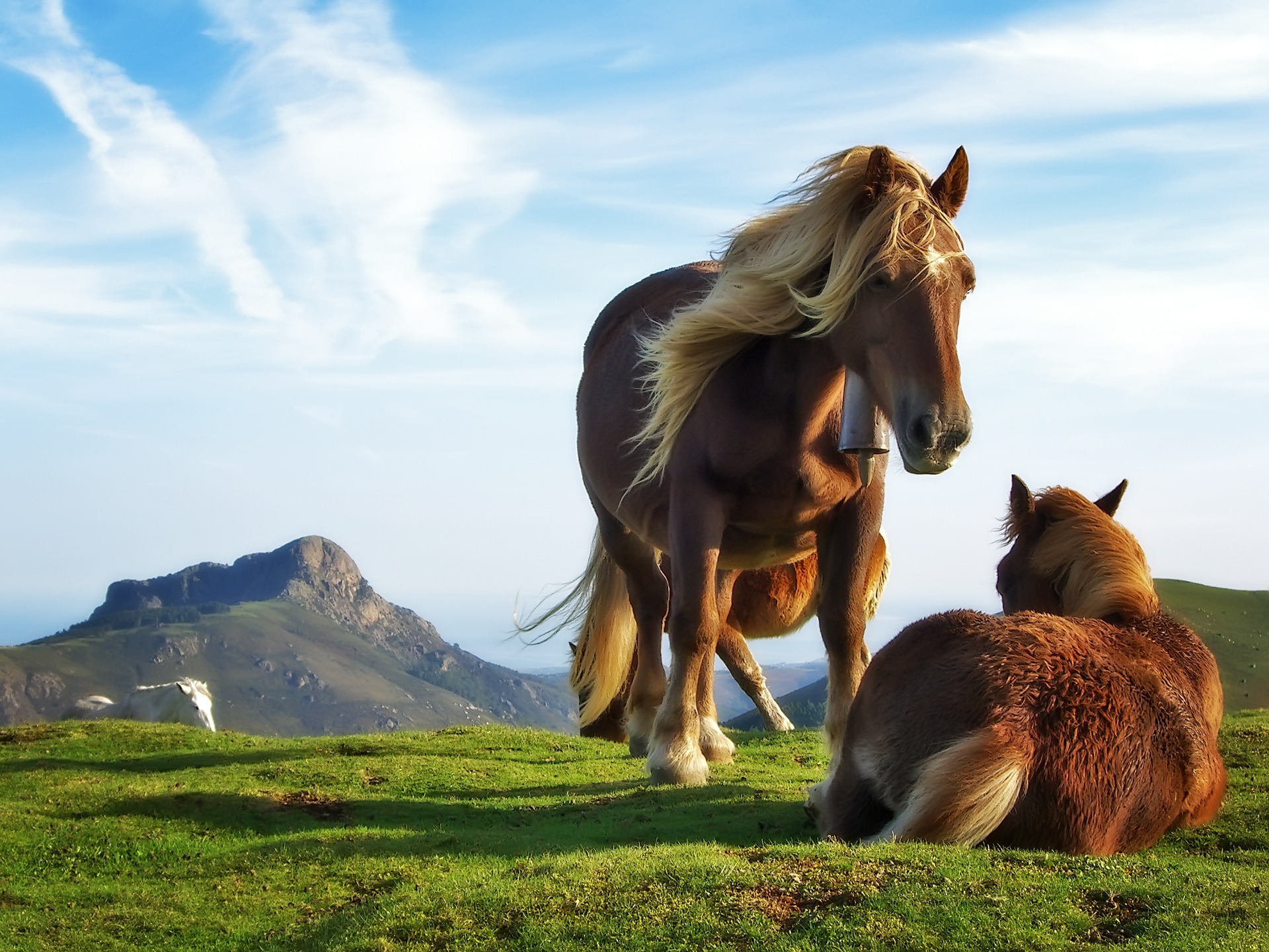 Скачать обои для рабочего стола Лошади на вершине холма и фото