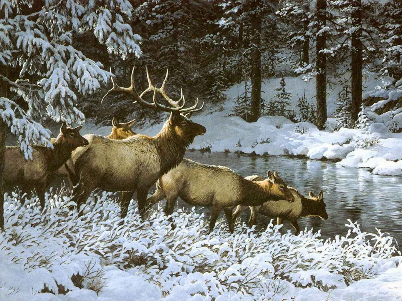 Скачать обои для рабочего стола Лоси на водопое и фото
