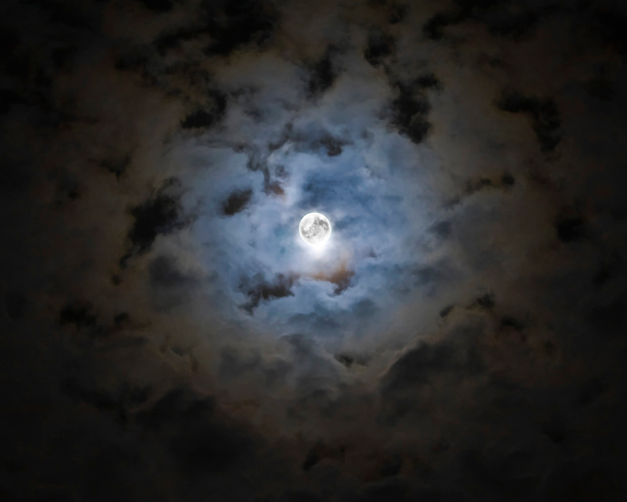 Скачать обои для рабочего стола Луна в облачном небе и фото
