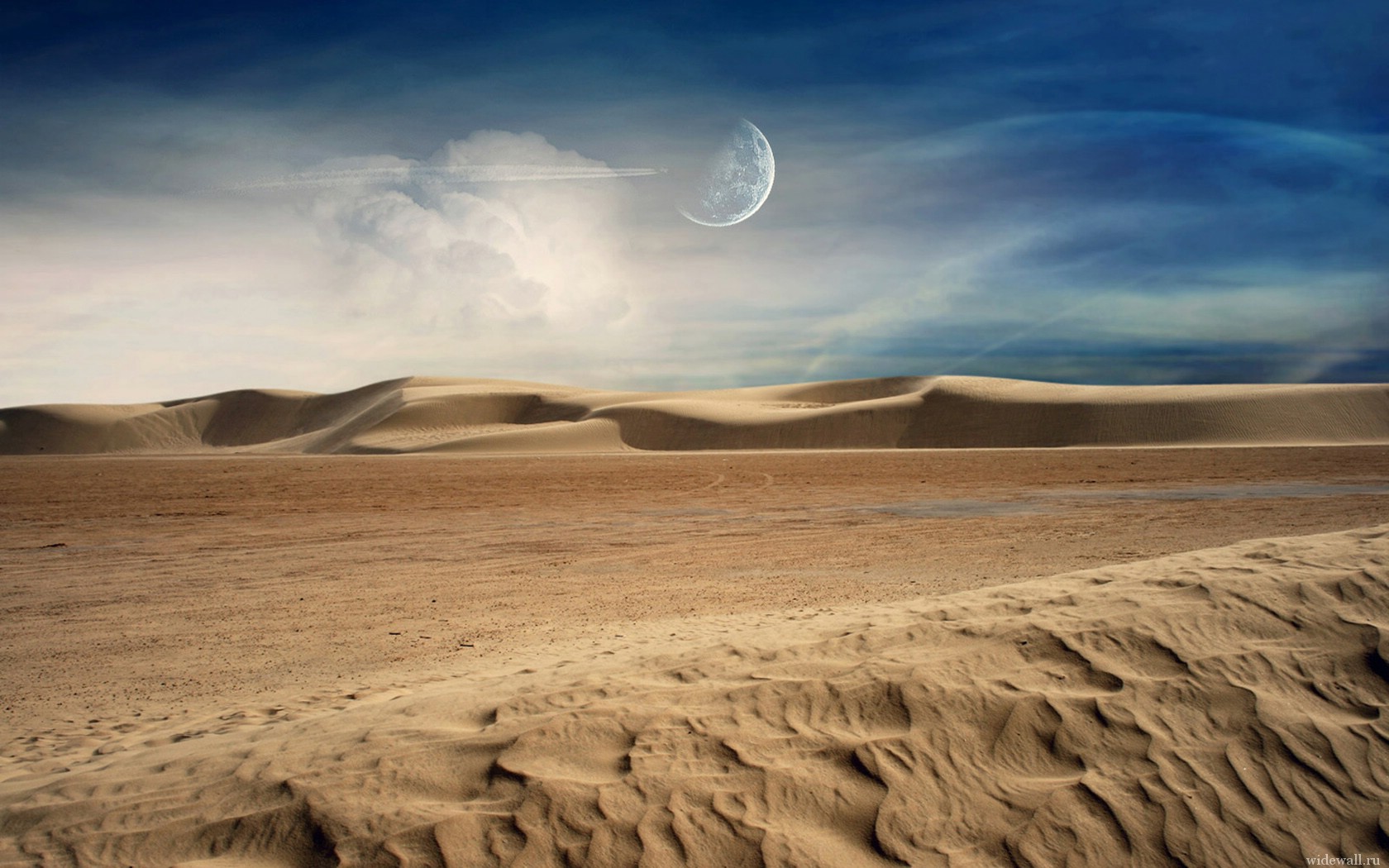 Скачать обои для рабочего стола Луна в пустыне и фото