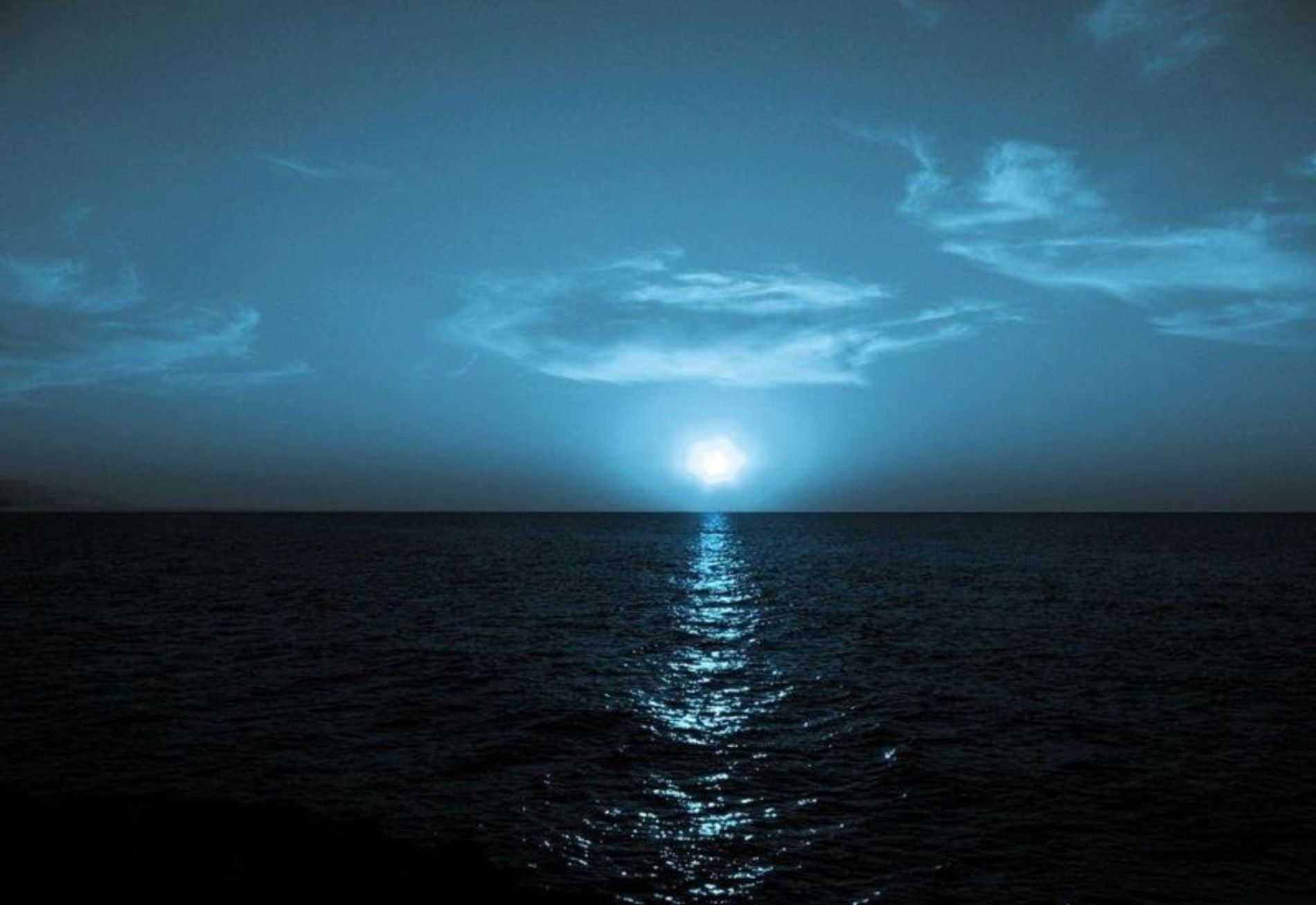 Скачать обои для рабочего стола Лунная дорожка по ночному морю и фото