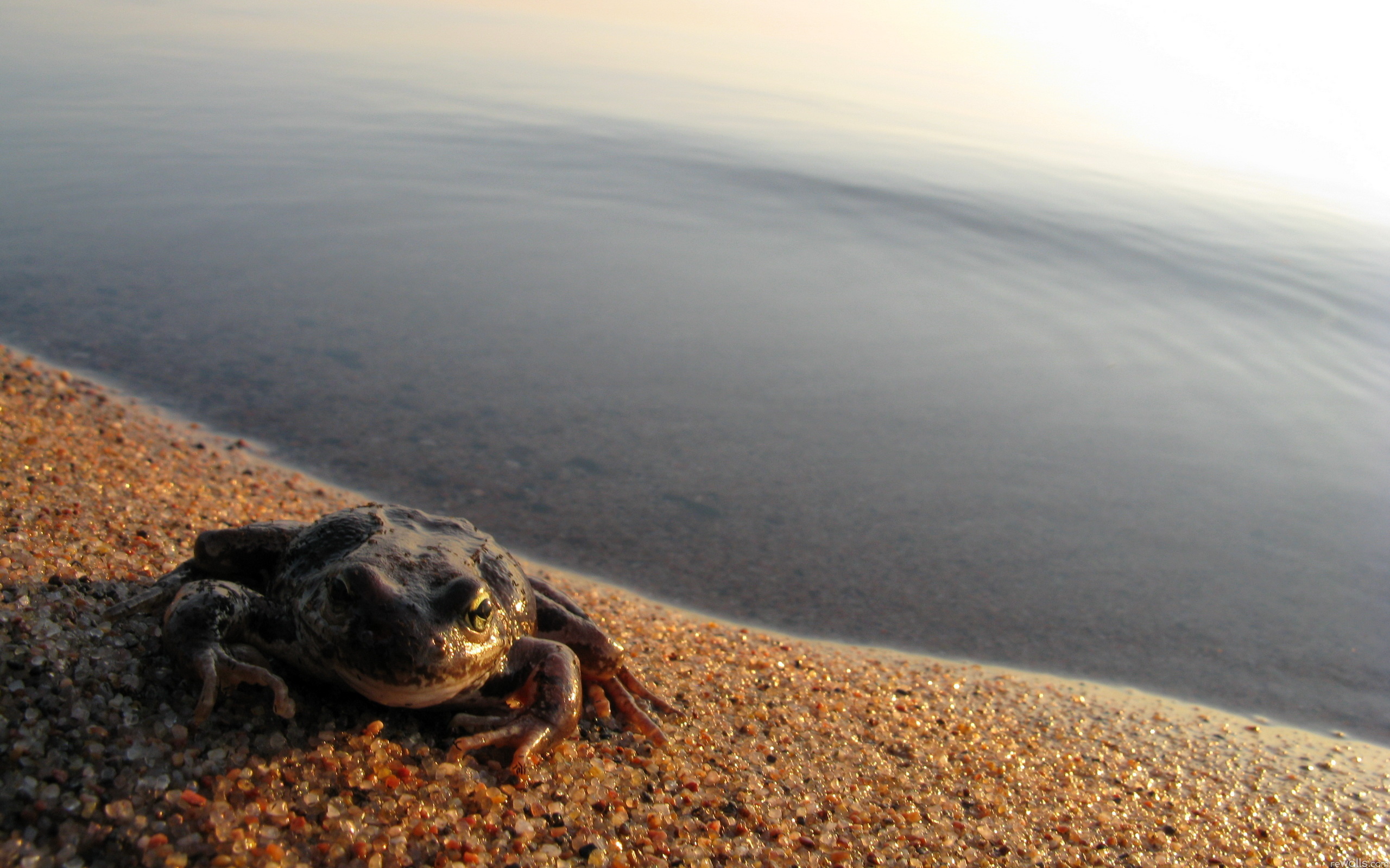 Скачать обои для рабочего стола Лягушка на берегу озера и фото
