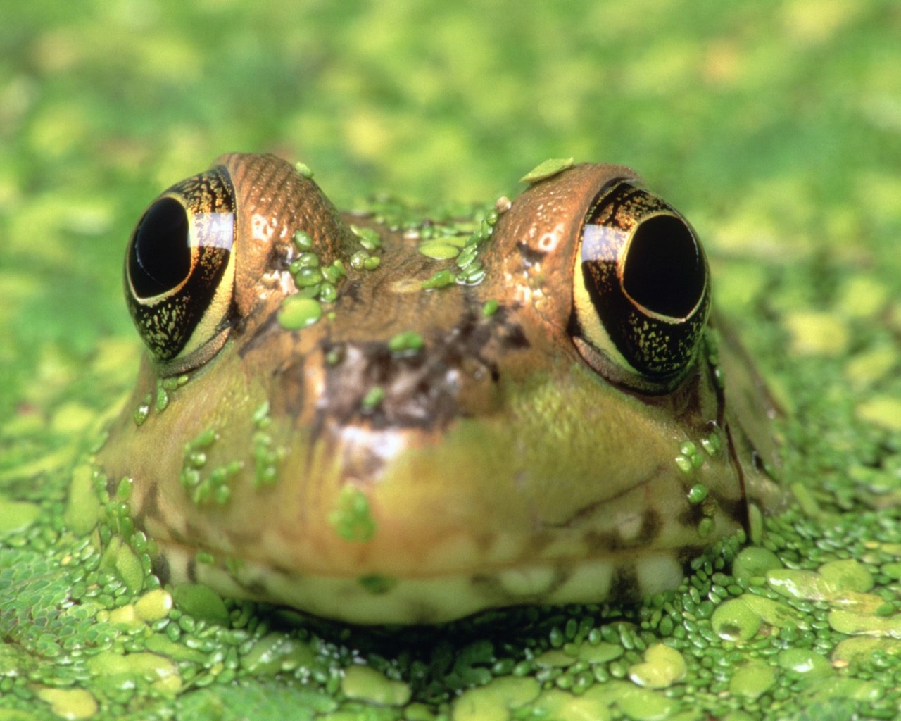Скачать обои для рабочего стола Лягушка в болоте и фото