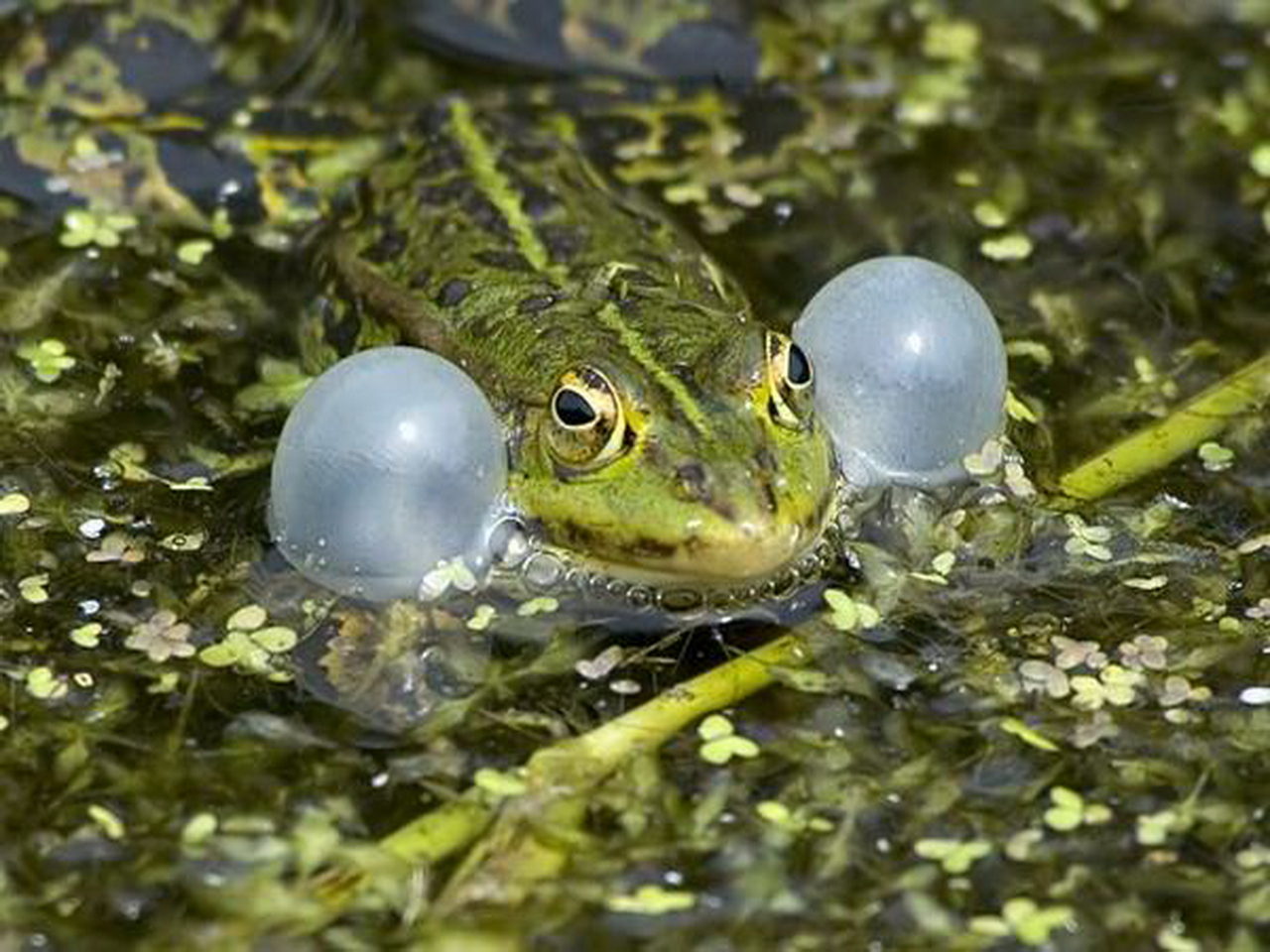 Скачать обои для рабочего стола Лягушка в воде надувает пузыри и фото