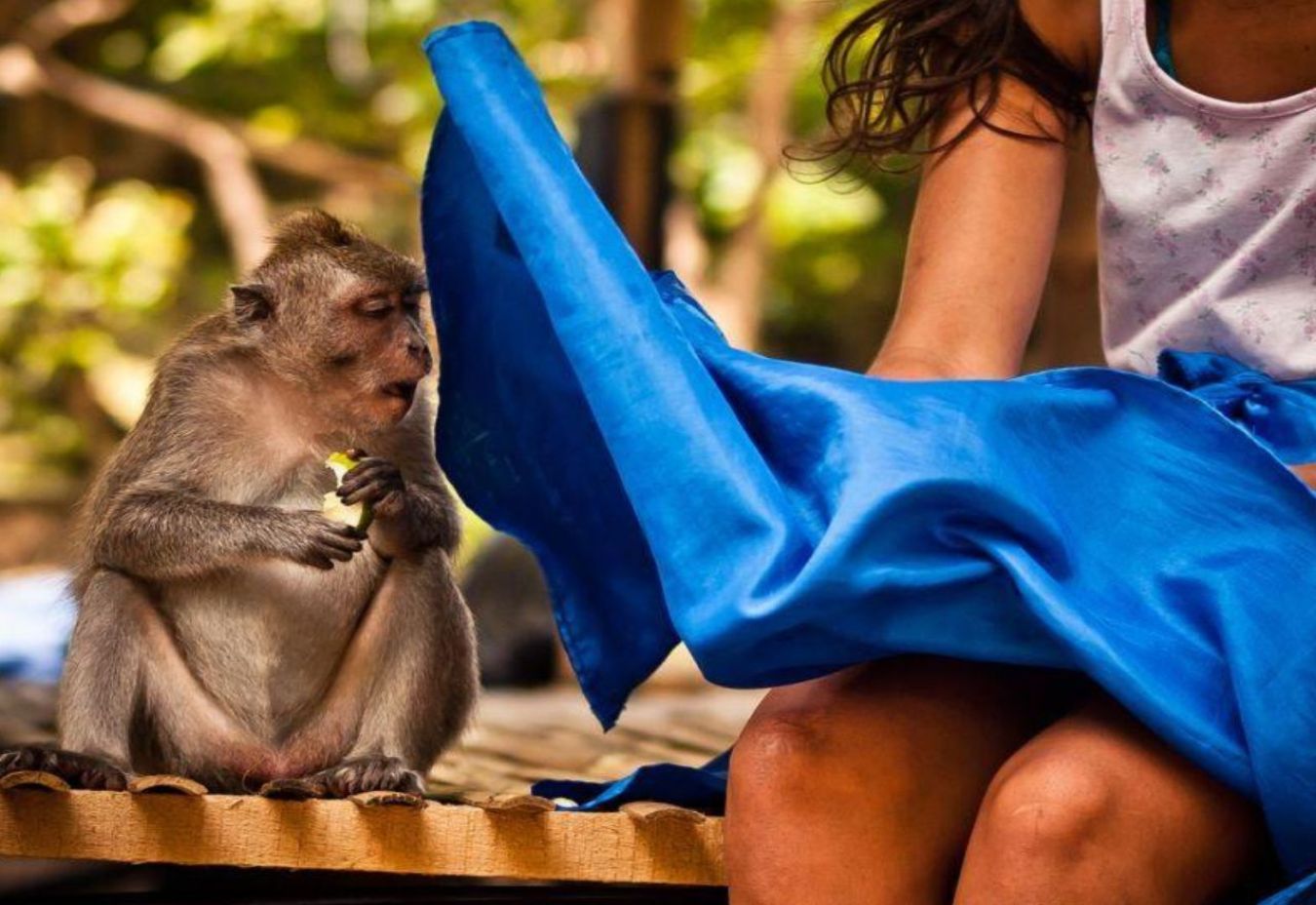 Скачать обои для рабочего стола Любопытная обезьянка и фото