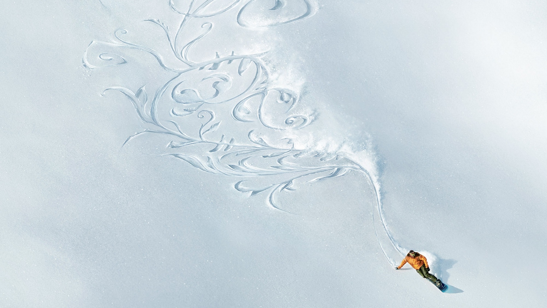 Скачать обои для рабочего стола Лыжник и узор на снегу и фото