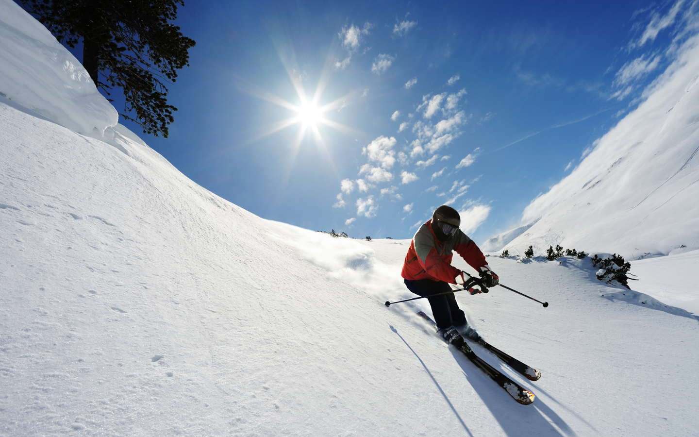 Скачать обои для рабочего стола Лыжник на склоне горы и фото