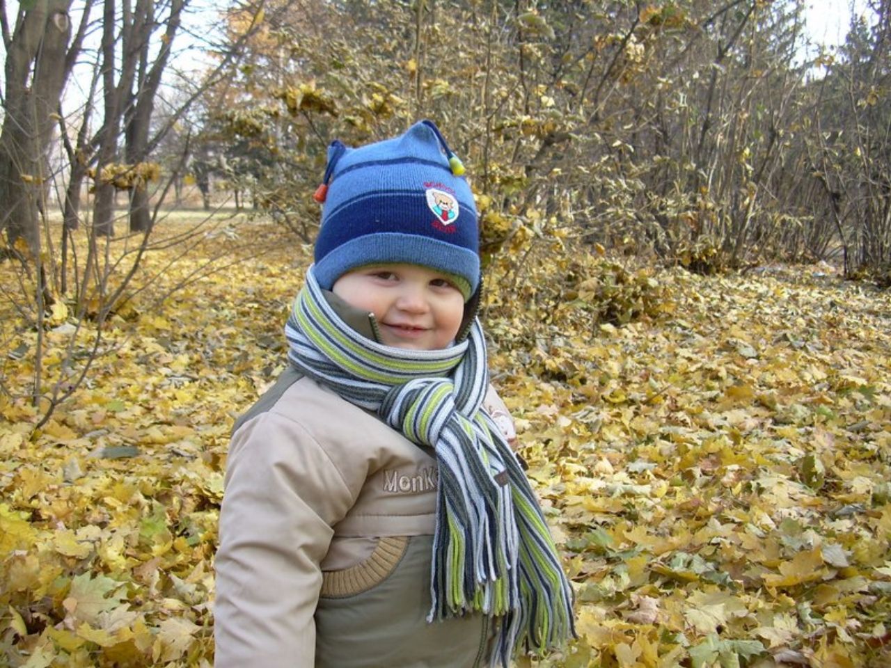 Скачать обои для рабочего стола Мальчик и осень и фото