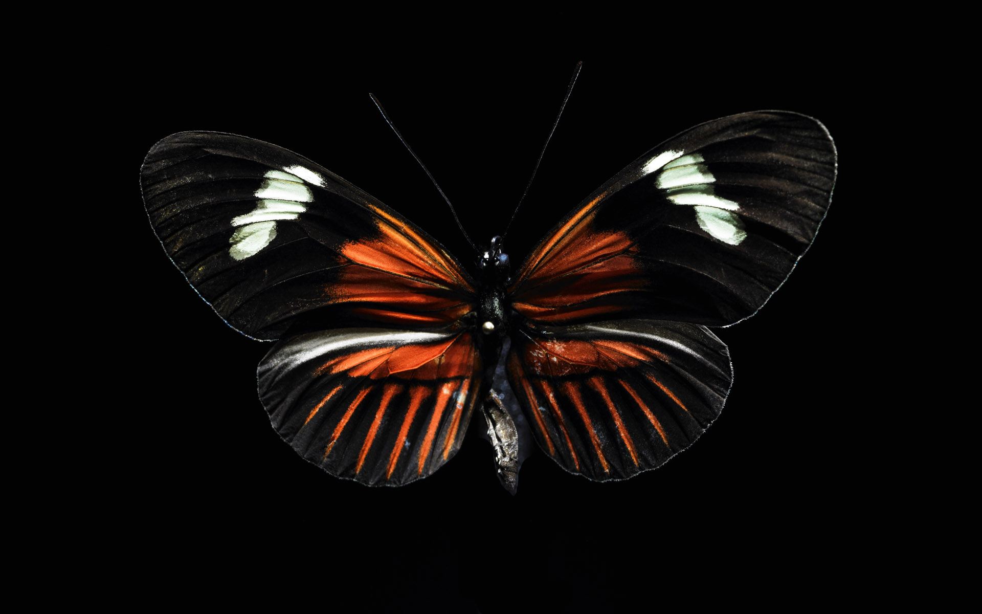 Скачать обои для рабочего стола Маленькая бабочка, чёрная с красными вставками и фото