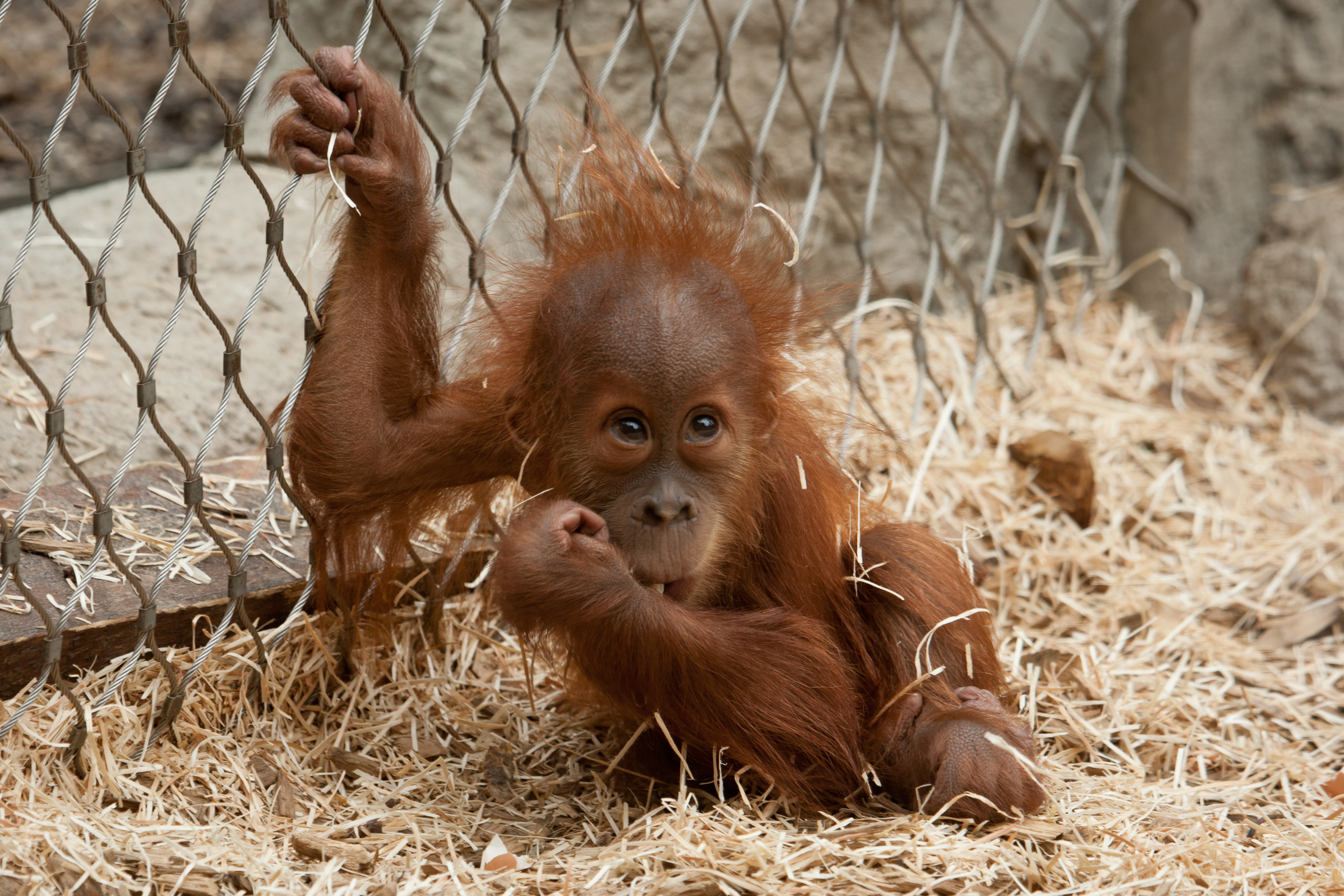 Скачать обои для рабочего стола Маленькая обезьянка на сене и фото