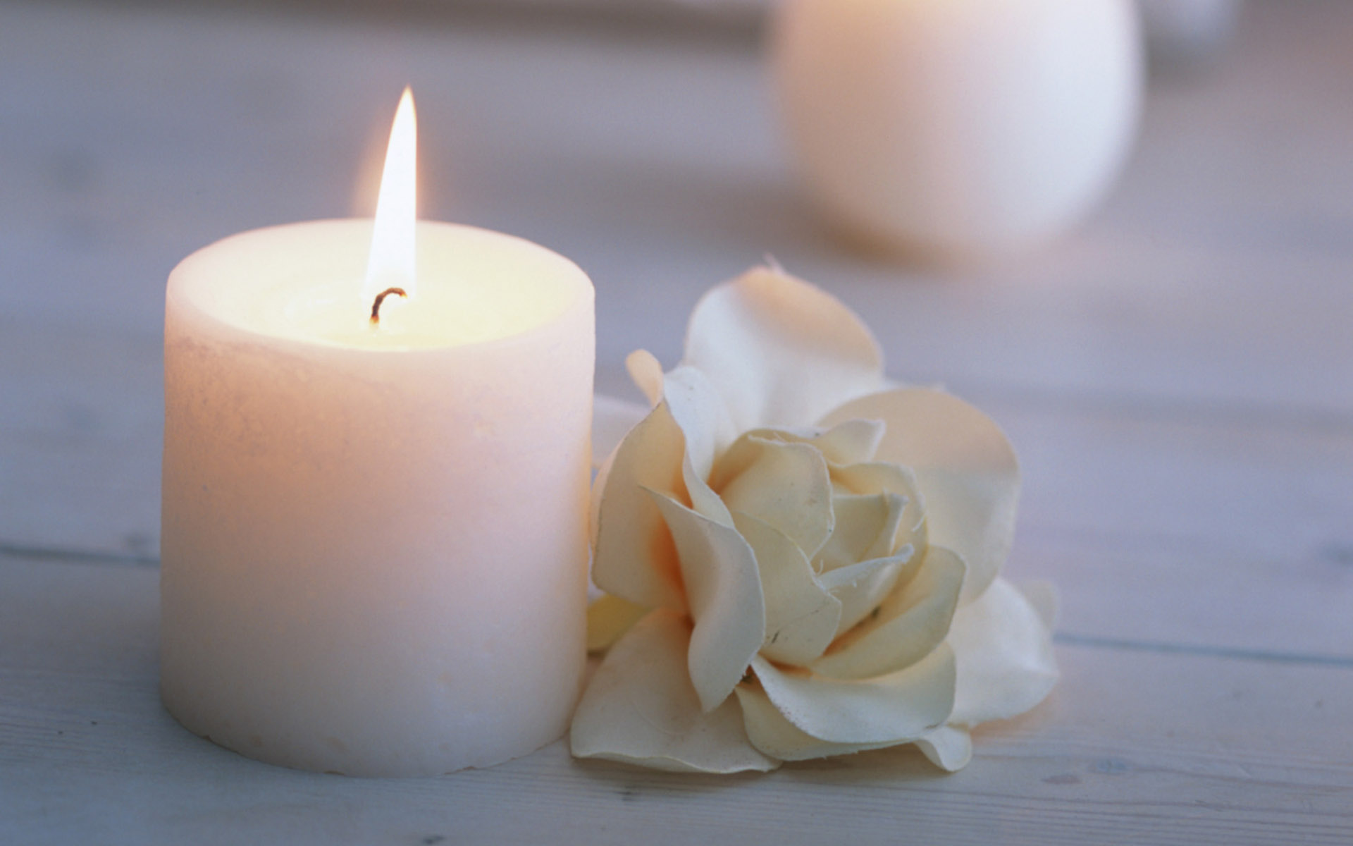 Скачать обои для рабочего стола Маленькая свечка и белая розка и фото