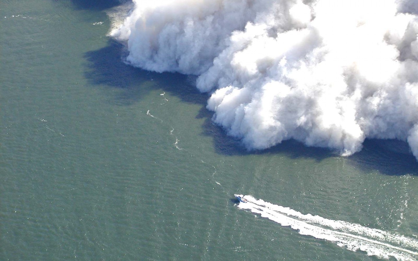 Скачать обои для рабочего стола Маленькая яхта и цунами и фото