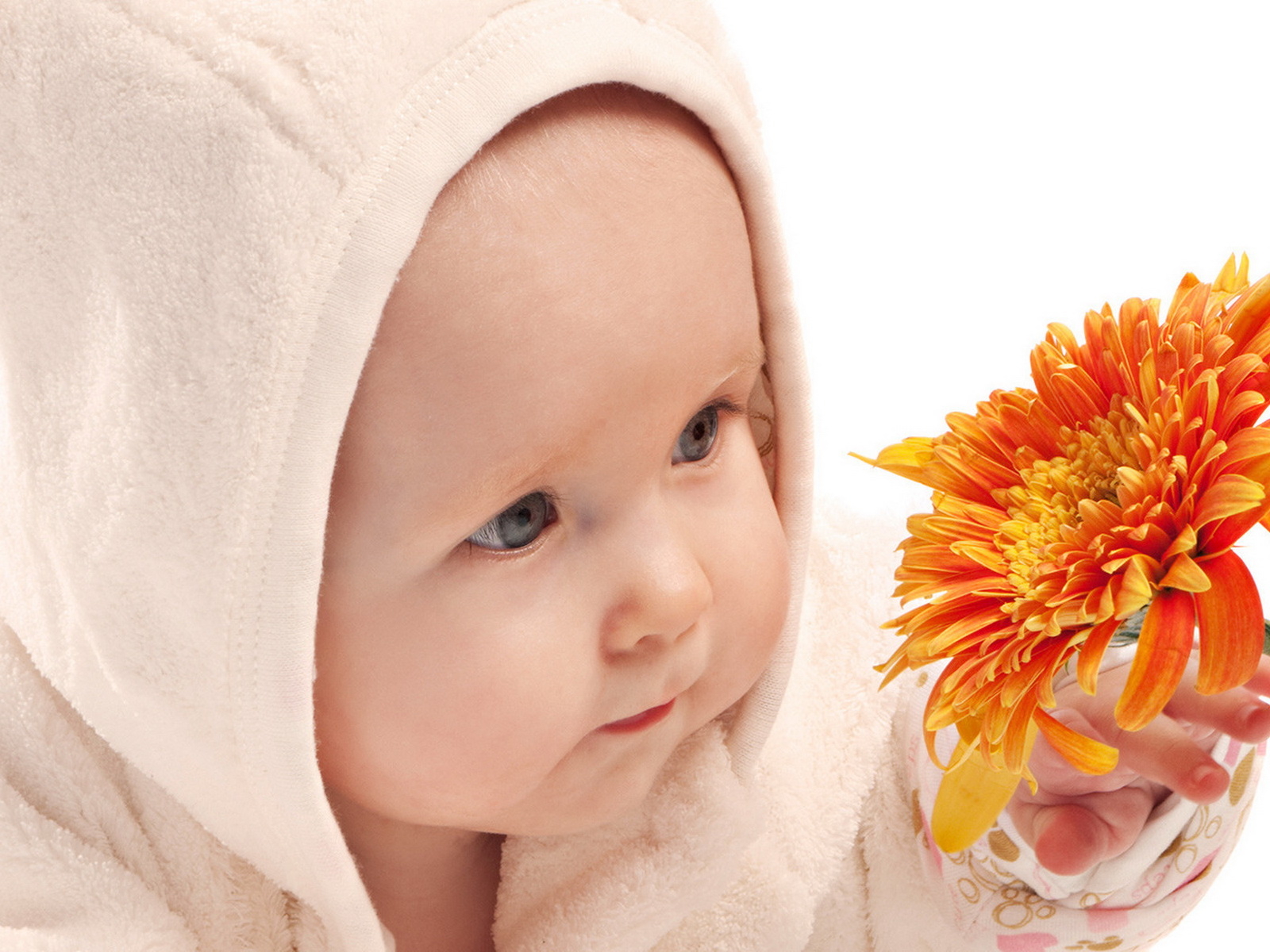 Скачать обои для рабочего стола Малыш с цветком и фото