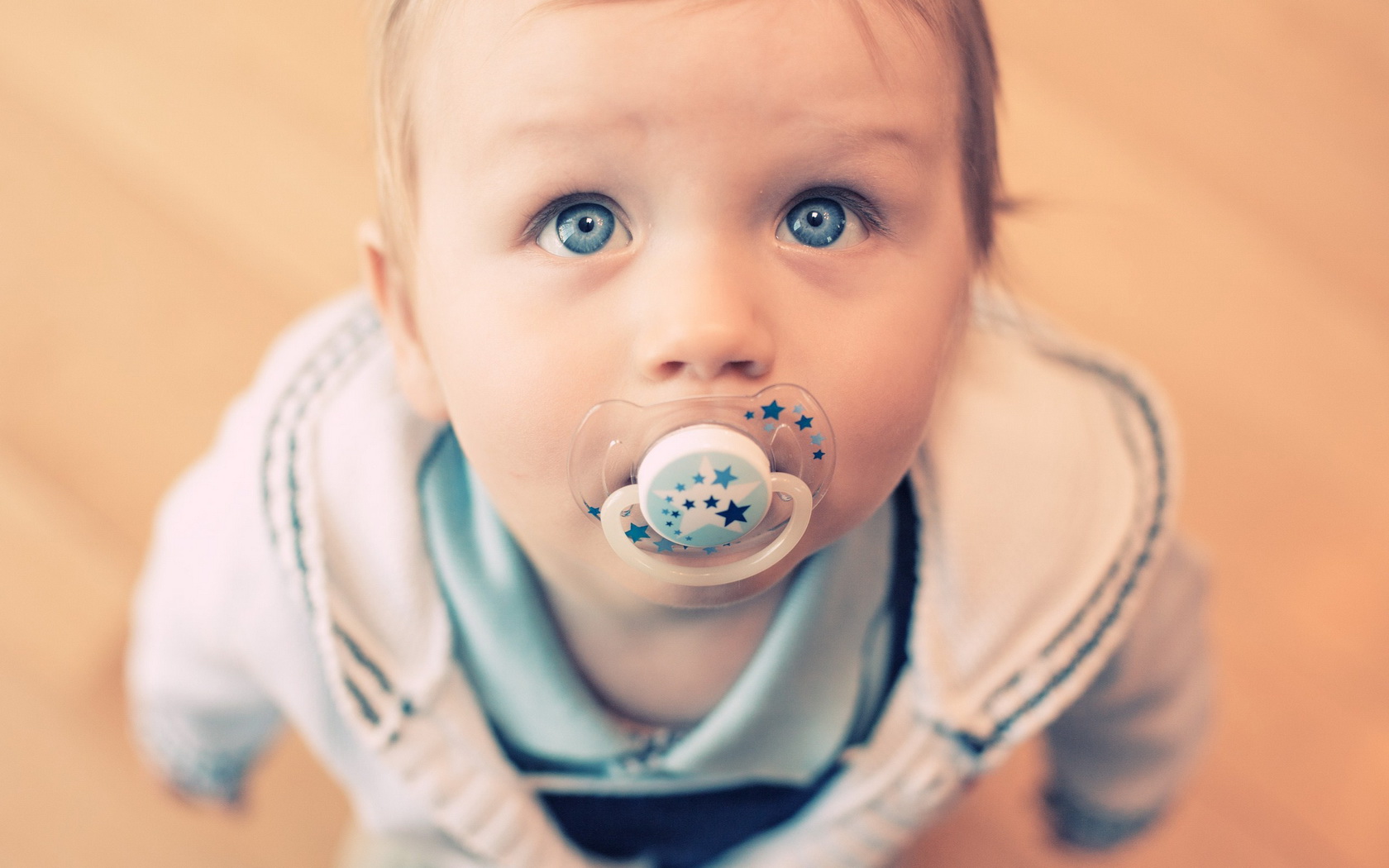 Скачать обои для рабочего стола Малыш с соской во рту и фото