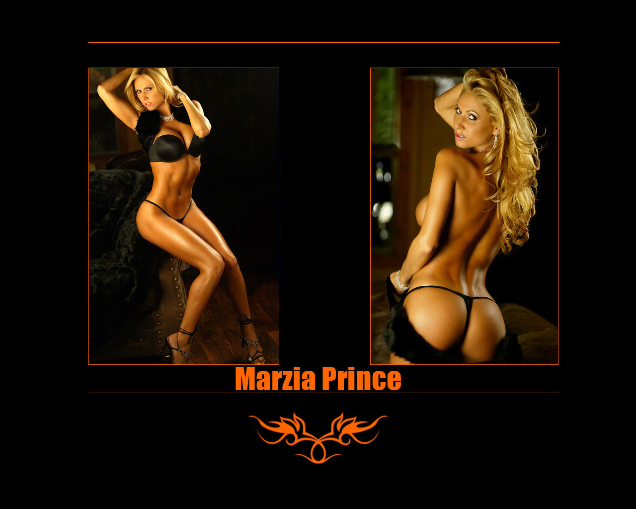 Скачать обои для рабочего стола Marzia Prince в чёрно-оранжевых обоях и фото