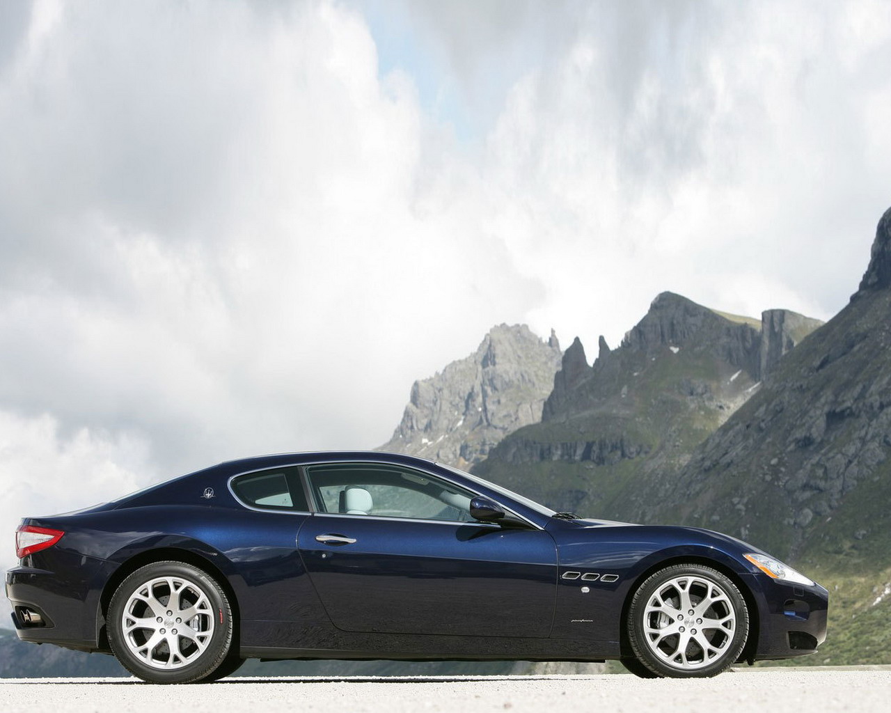 Скачать обои для рабочего стола Maserati granturismo coupe горы и фото