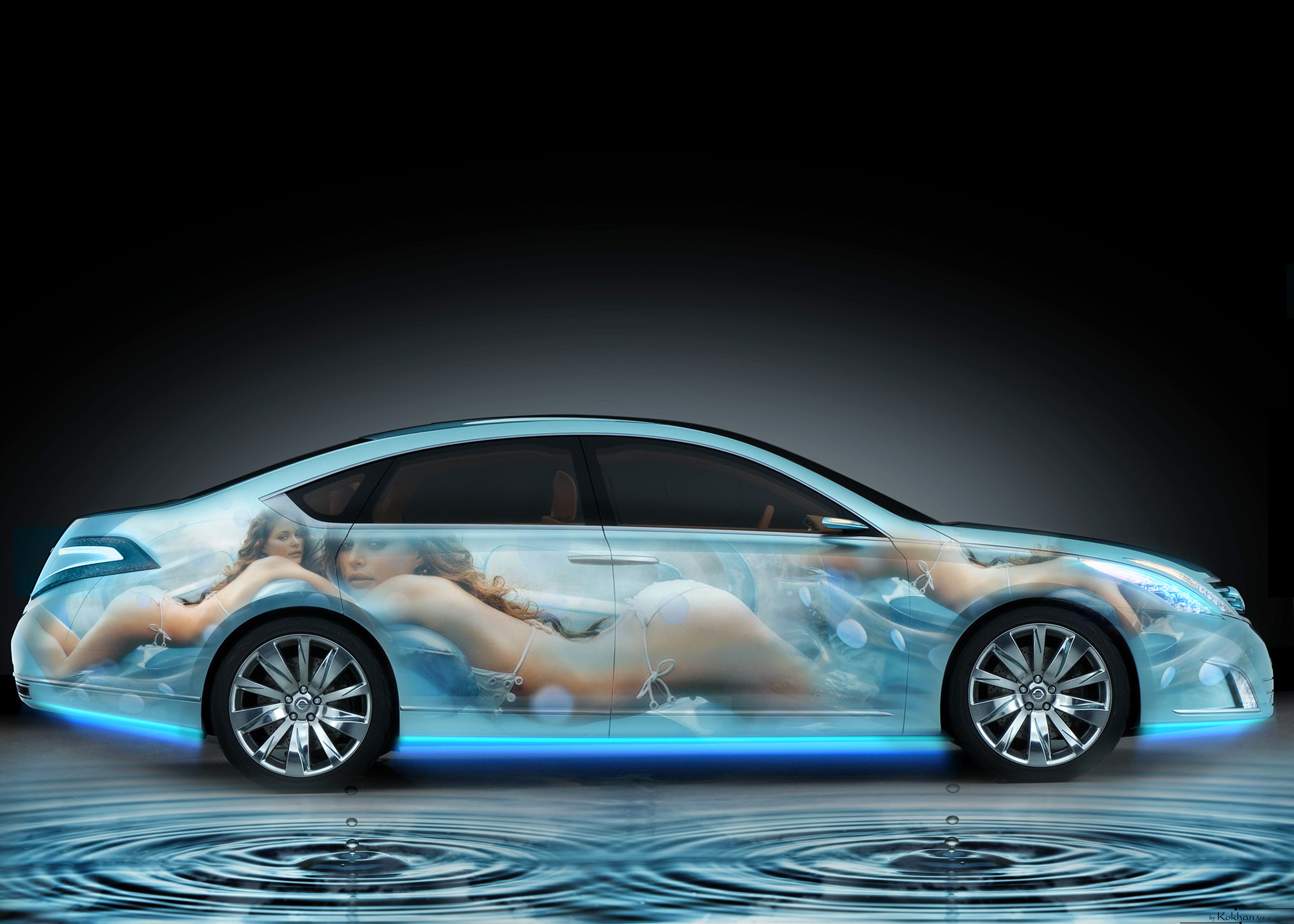 Скачать обои для рабочего стола Машина с тюнингом девушки и фото