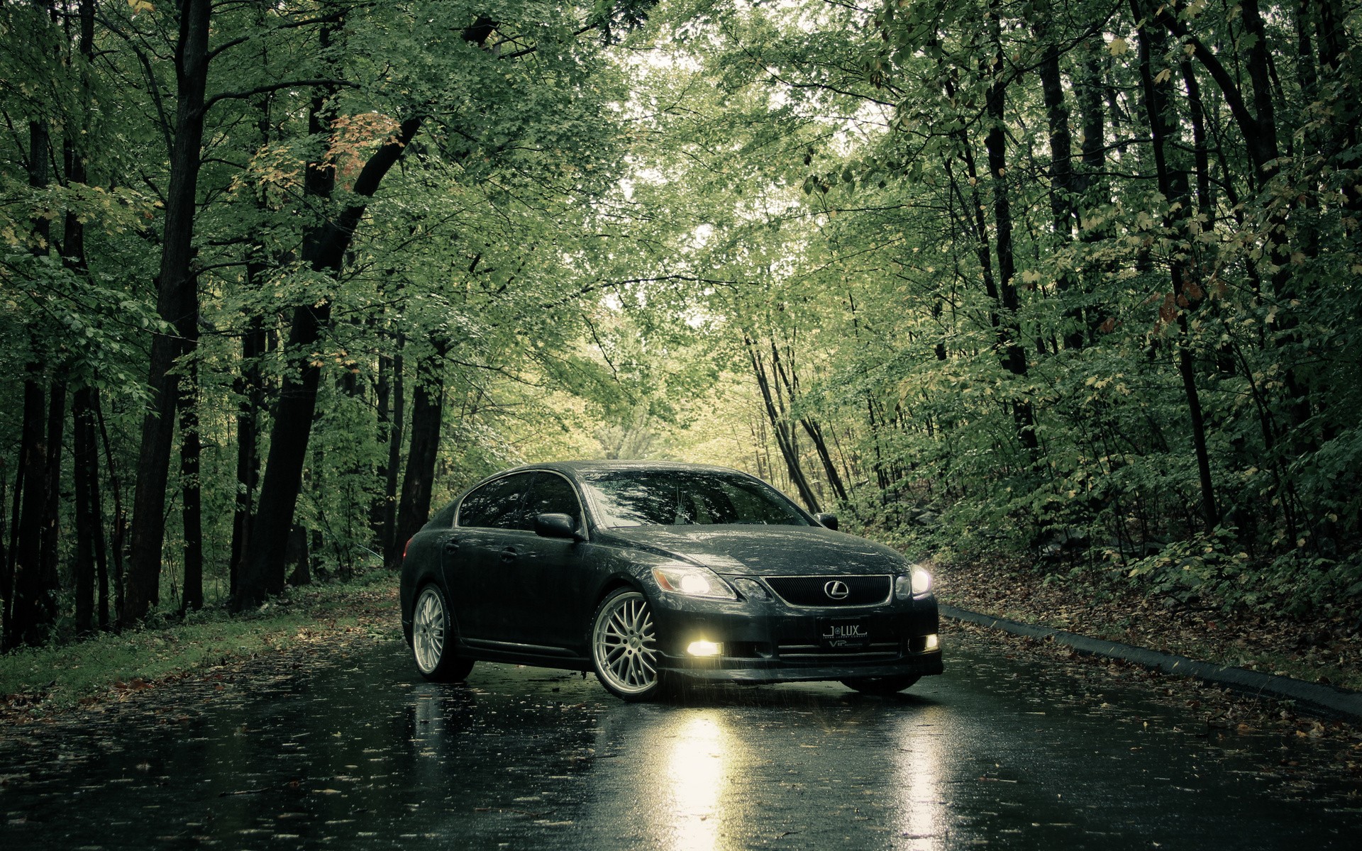 Похожие обои на Машина в дождливую погоду в лесу на дороге: