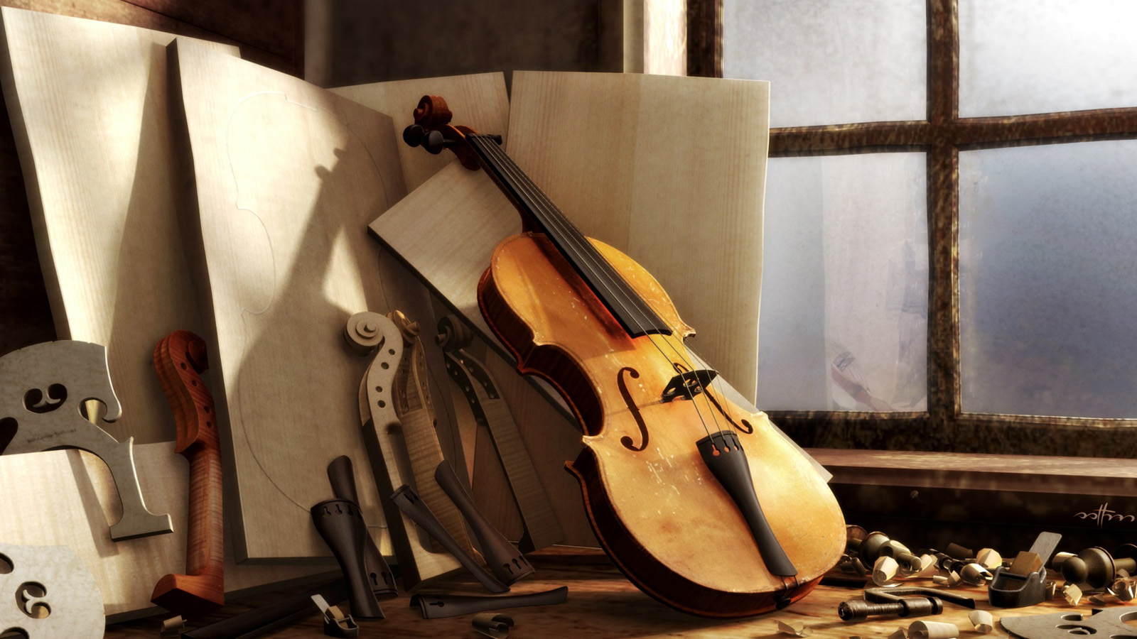 Скачать обои для рабочего стола Мастерская мастера скрипка и фото