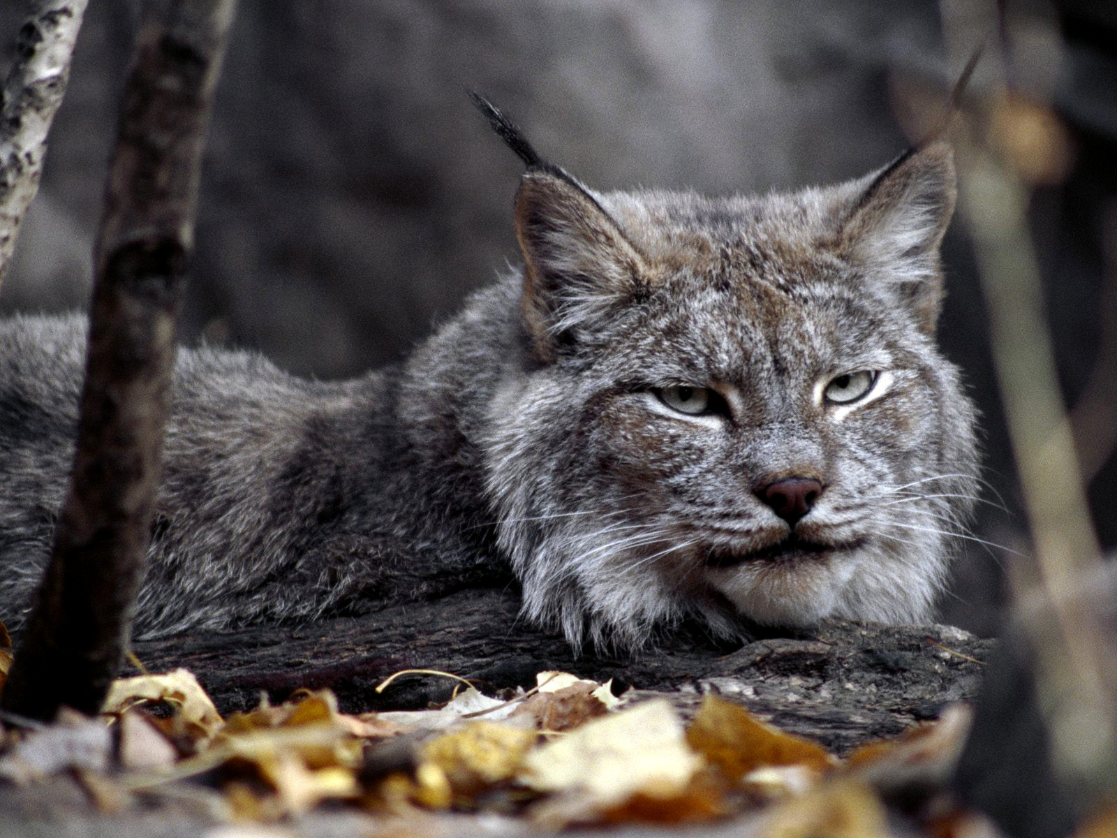 Скачать обои для рабочего стола Матерая рысь оценивает ситупцию и фото
