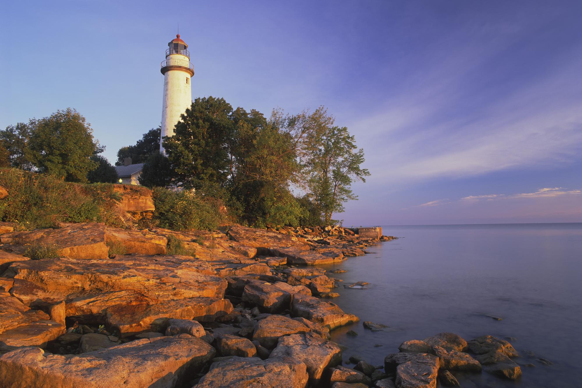 Скачать обои для рабочего стола Маяк на скалистом берегу и фото