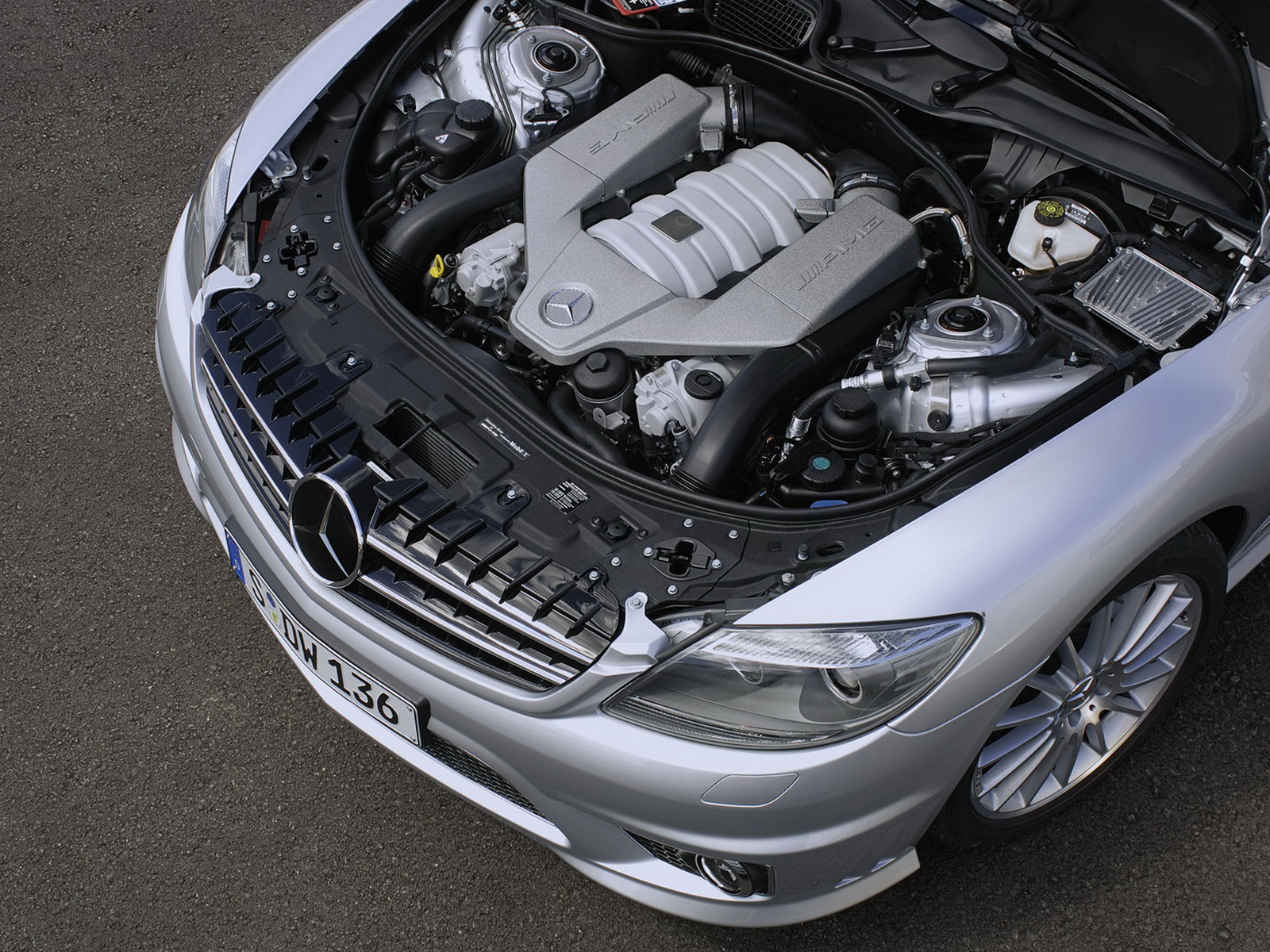 Скачать обои для рабочего стола Mb CL63 AMG вид стороны двигателя и фото