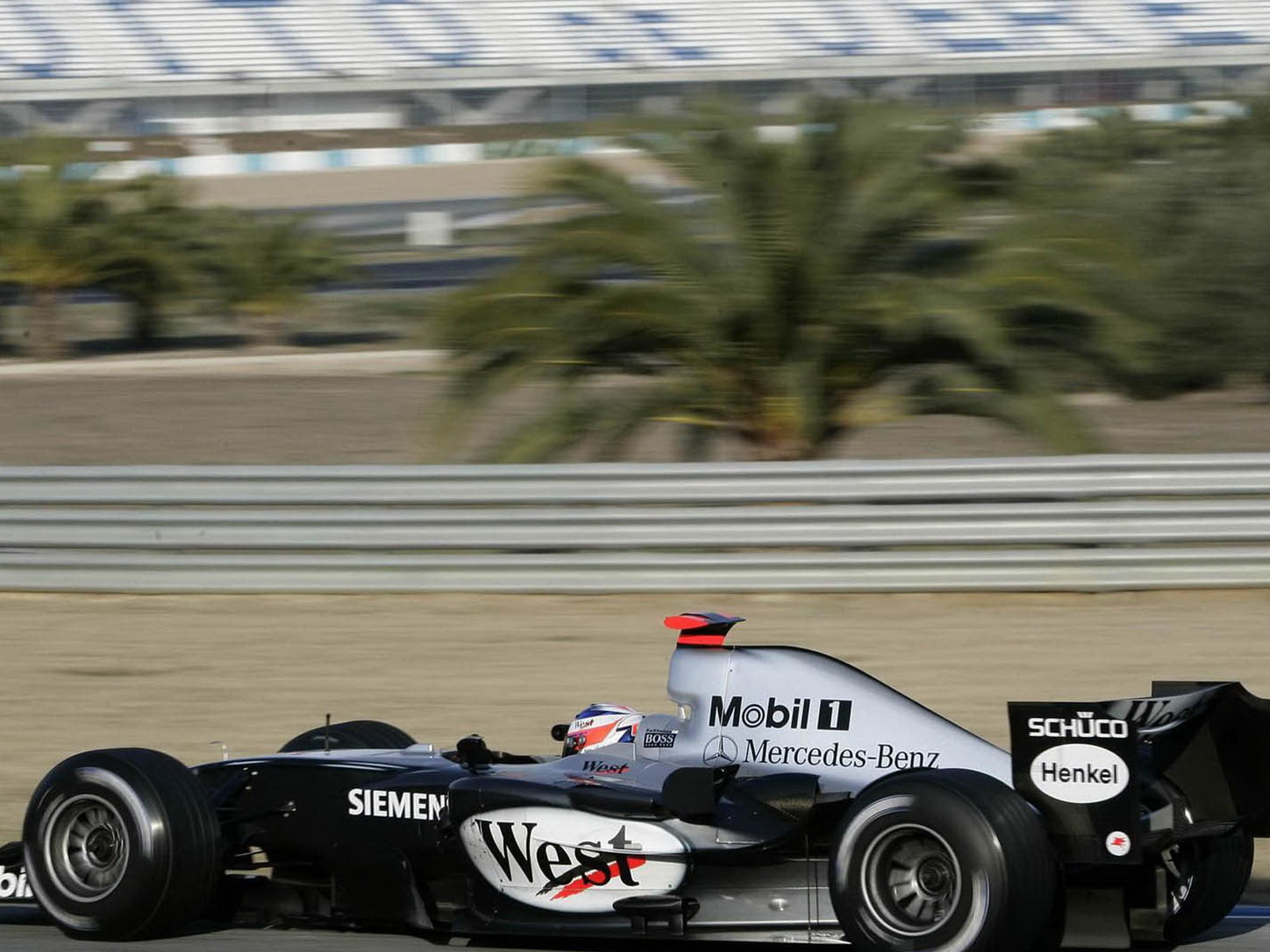 Скачать обои для рабочего стола MB F1 McLaren вид с камеры на иллюстрированном фоне и фото