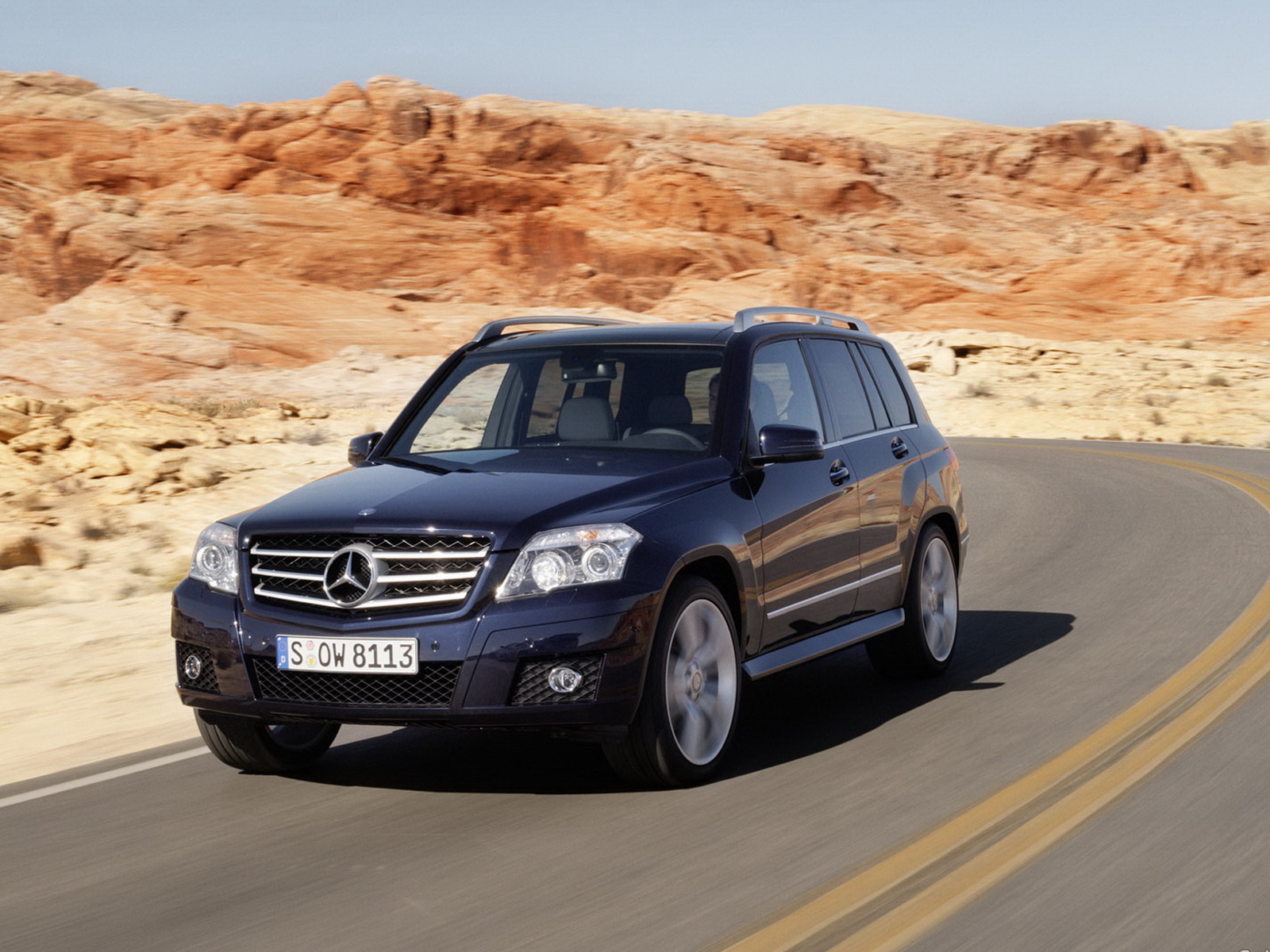 Обои MB GLK вид с камеры на фоне дороги с другого ракурса