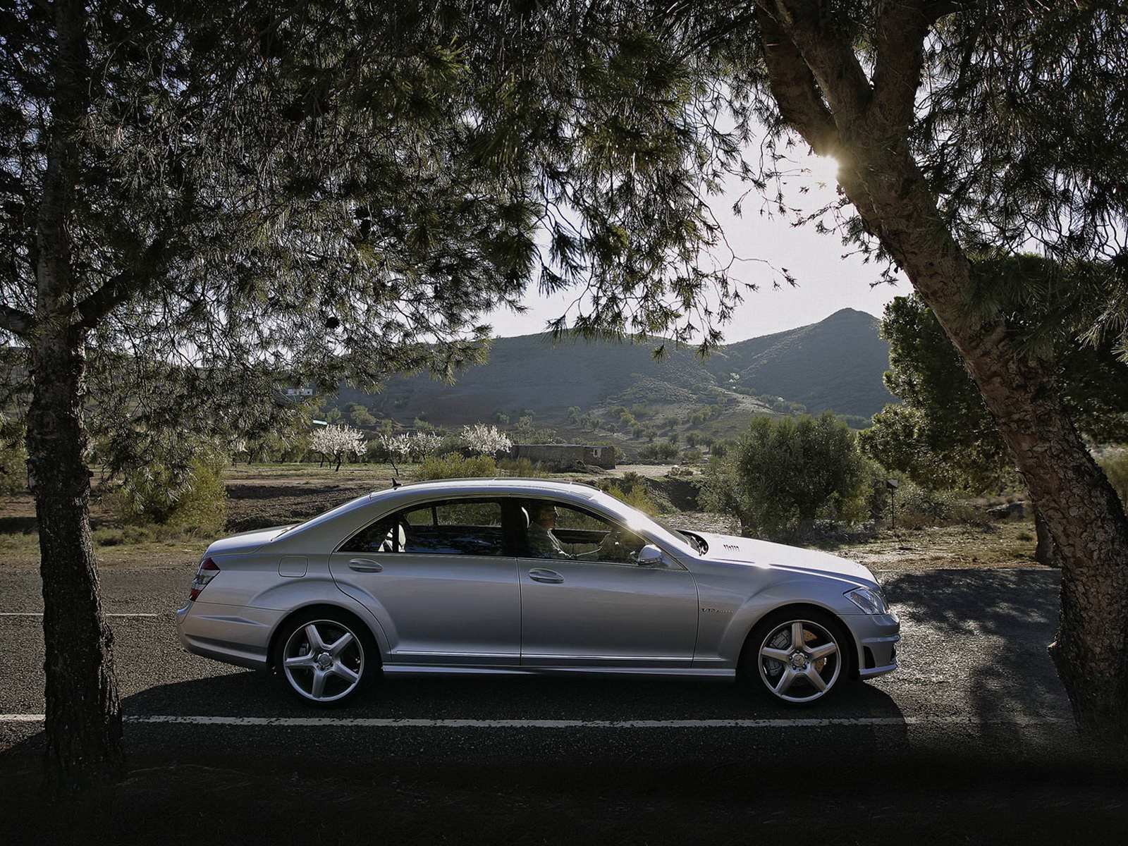 Скачать обои для рабочего стола MB S65 AMG вид с камеры на фоне леса и фото