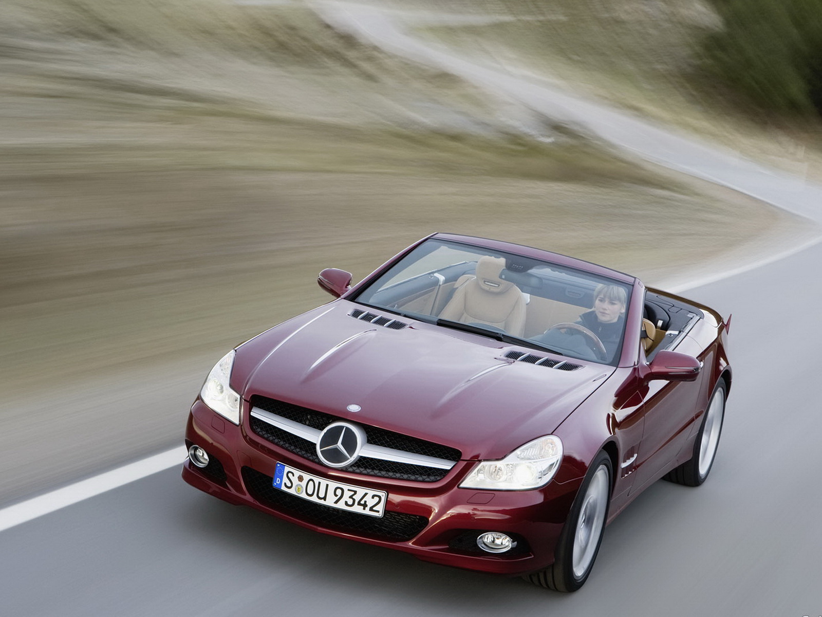 Обои Mb SL 2009 вид машины на фоне дороги