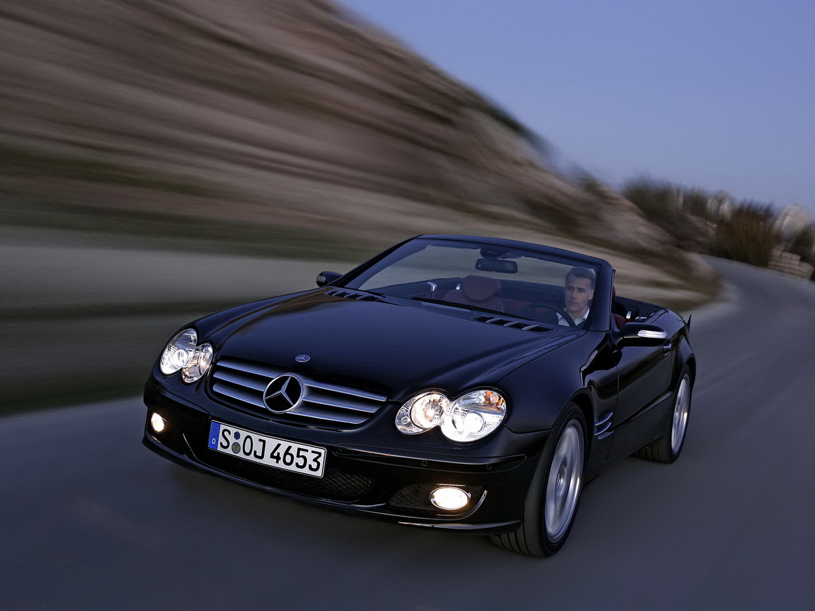 Обои MB SL вид с камеры в движении с другого ракурса