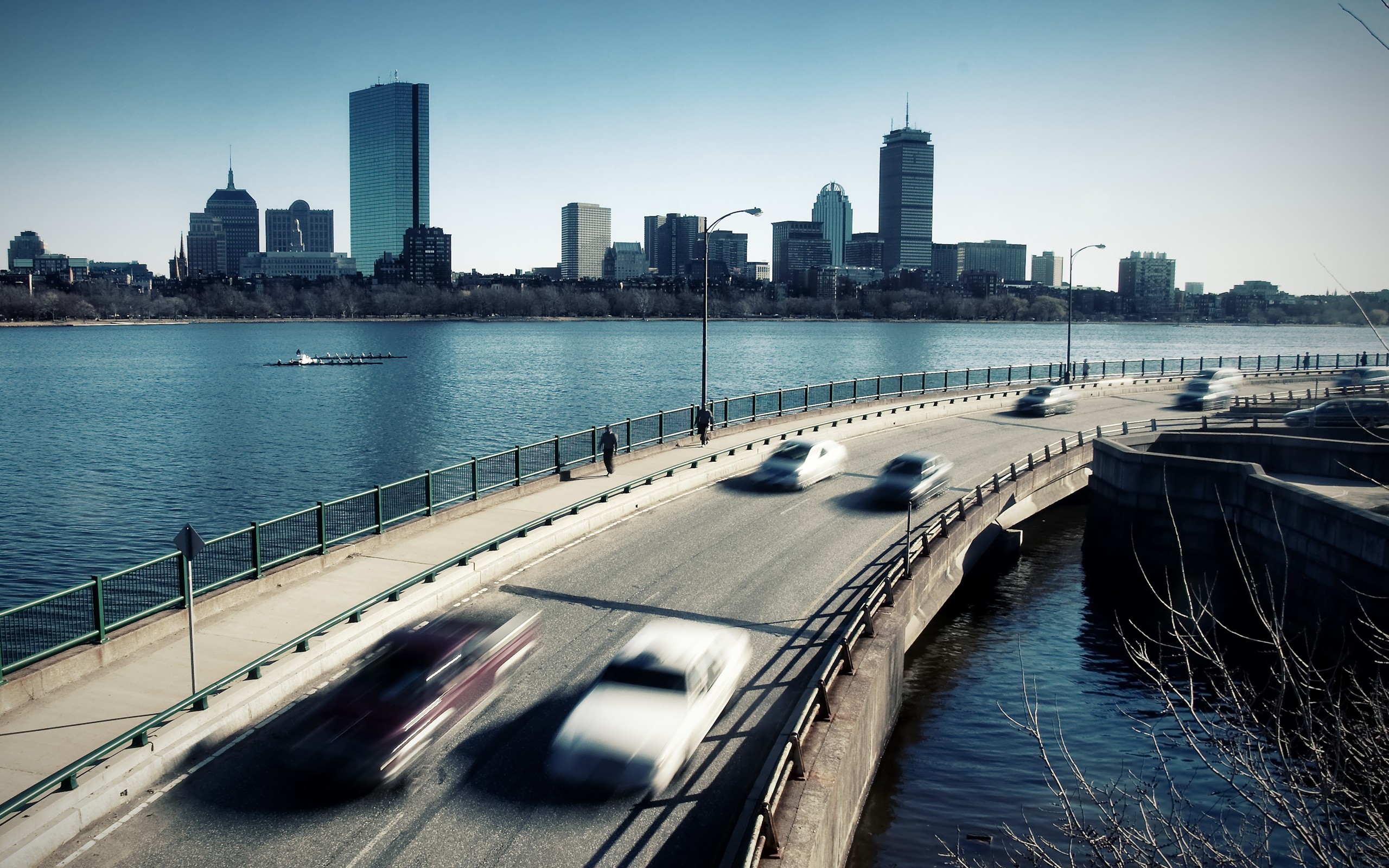 Скачать обои для рабочего стола Мчат машины по мосту и фото