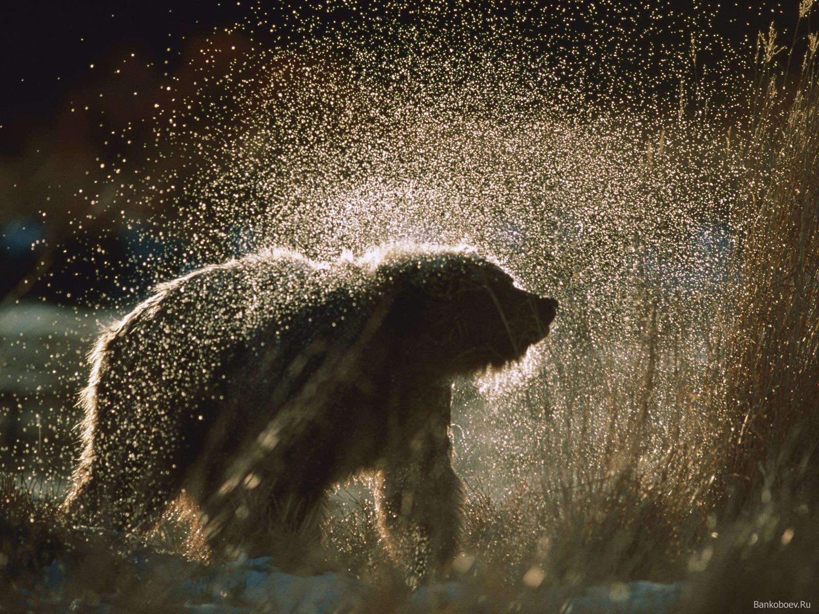 Скачать обои для рабочего стола Медведь и брызги и фото