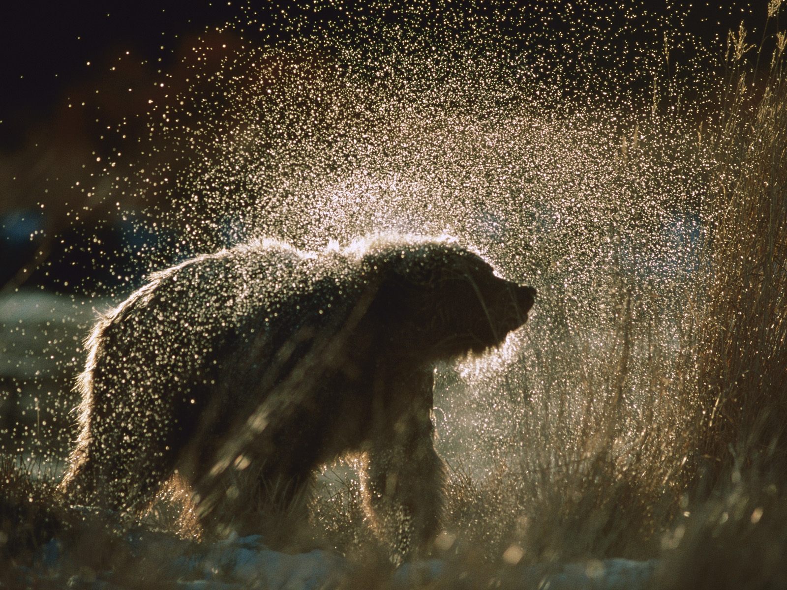 Скачать обои для рабочего стола Медведь отряхивается и фото