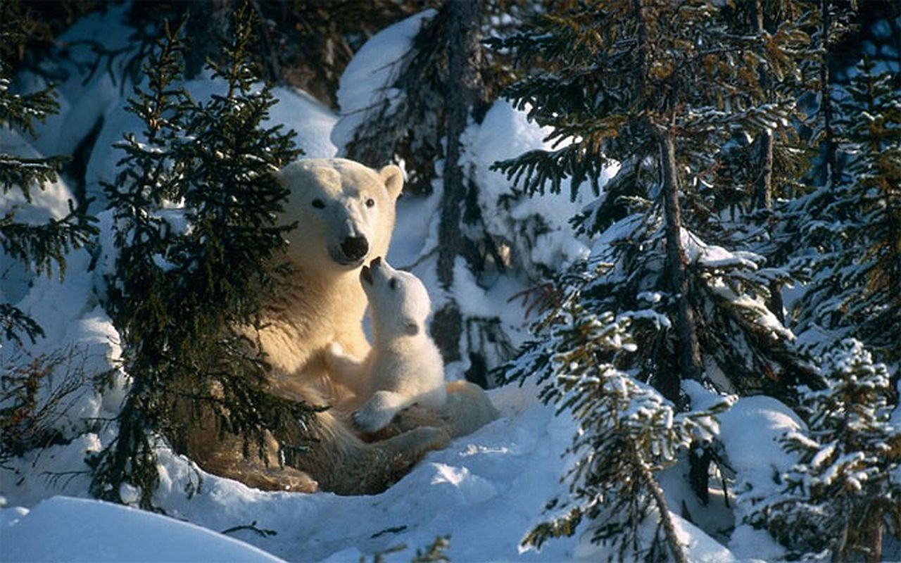 Скачать обои для рабочего стола Медведица и медвежонок и фото