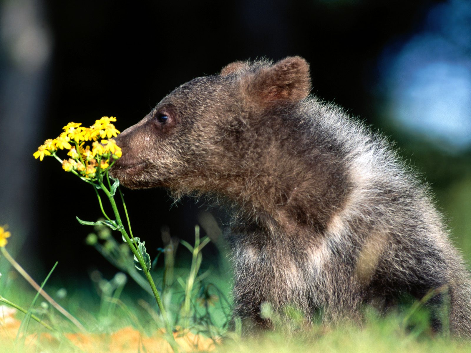 Скачать обои для рабочего стола Медвежонок и цветок и фото
