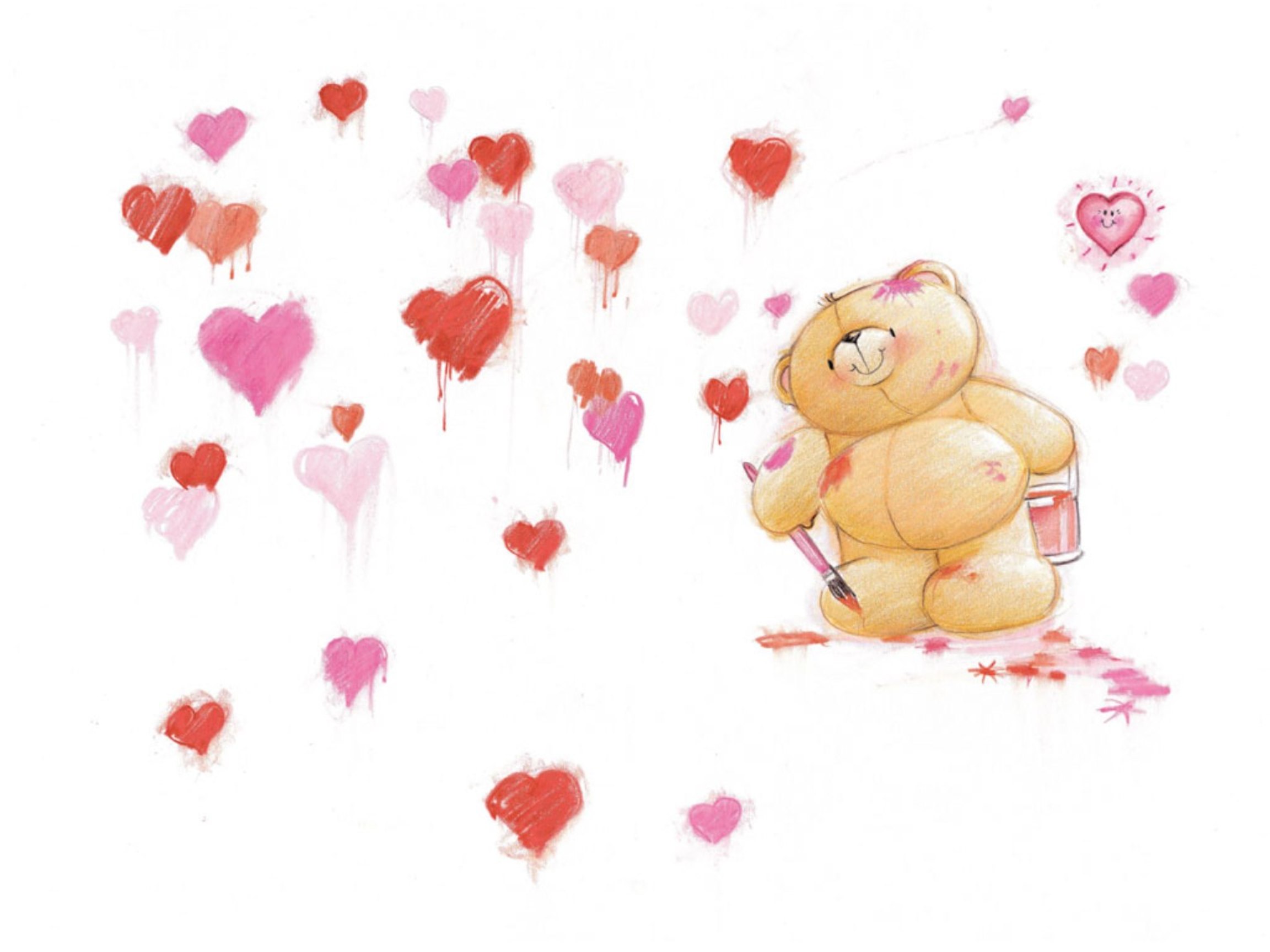 Скачать обои для рабочего стола Медвежонок рисует сердечки и фото