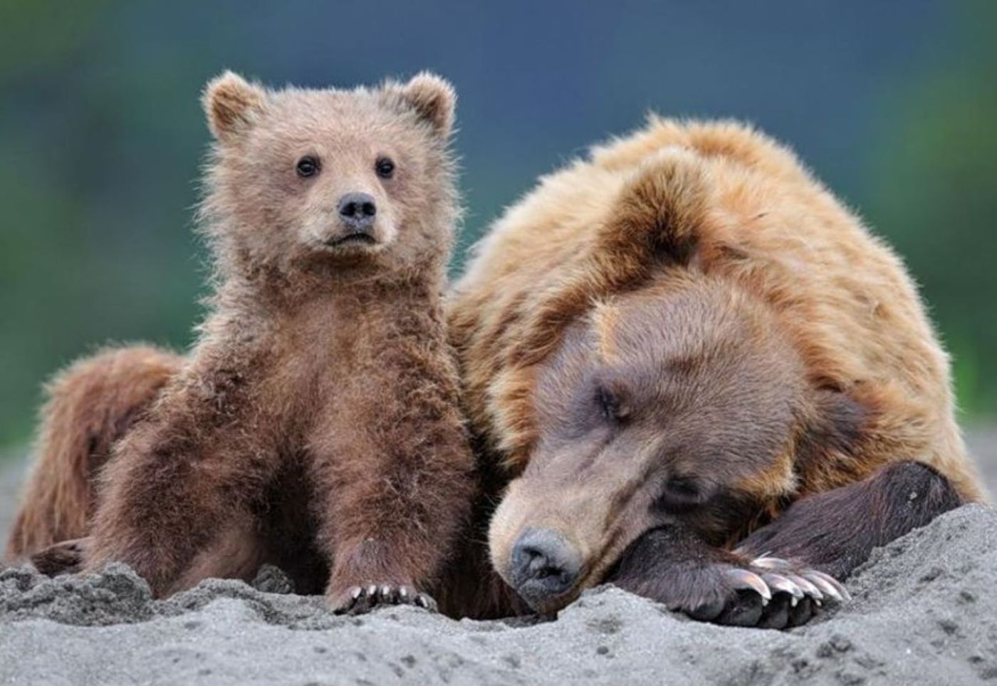 Скачать обои для рабочего стола Медвежонок с мамой и фото