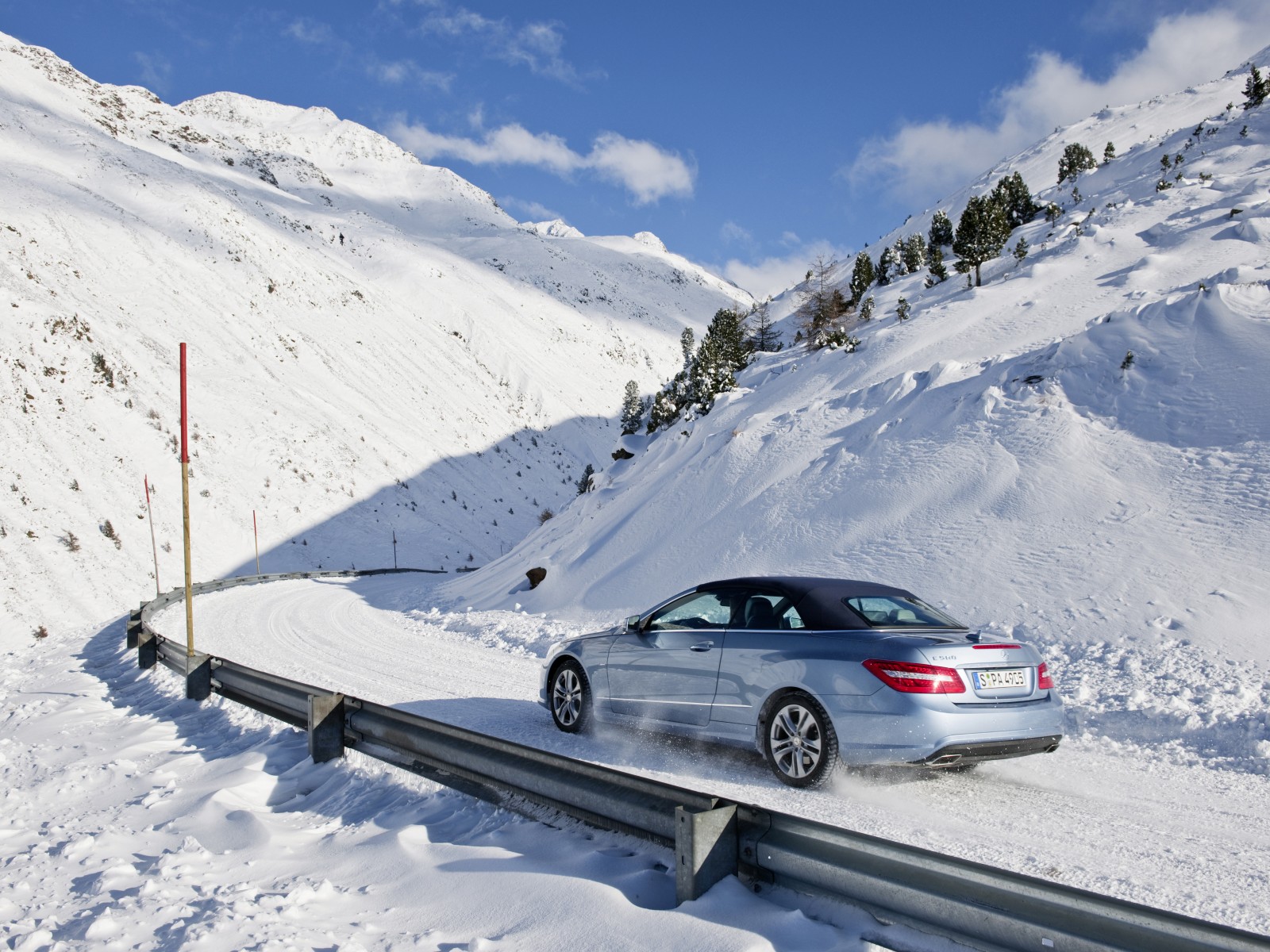 Скачать обои для рабочего стола Mercedes-Benz E 500 Cabriolet 2010 в горы и фото
