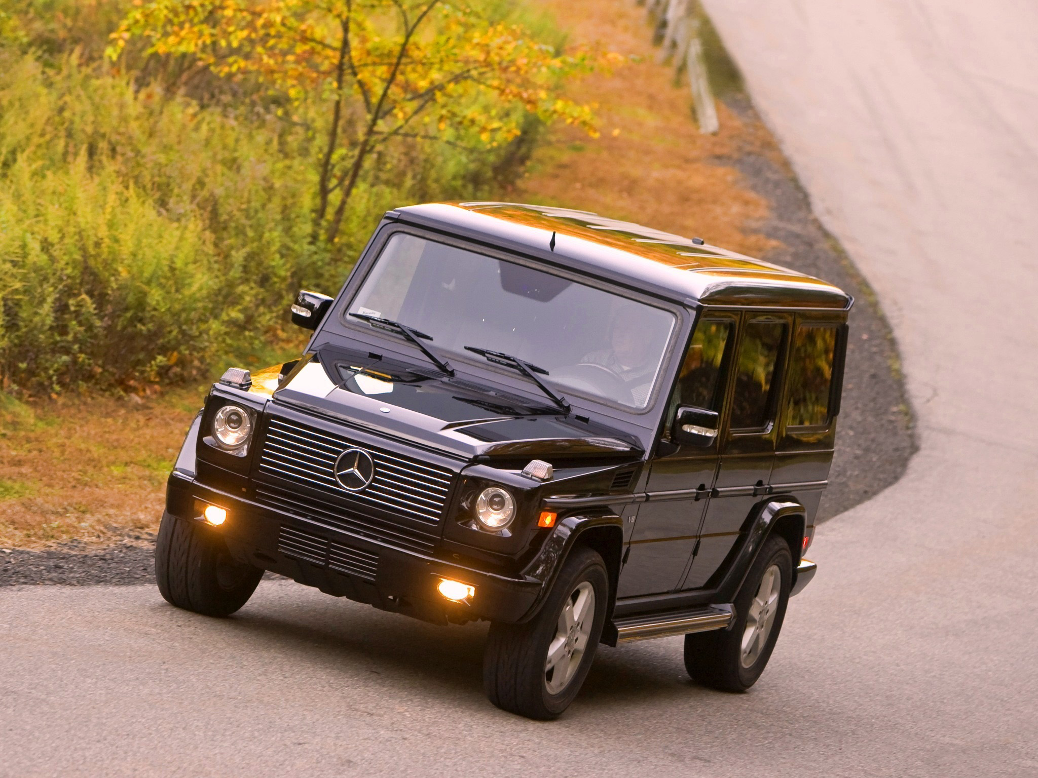 Скачать обои для рабочего стола Mercedes-Benz G500 на дороге и фото