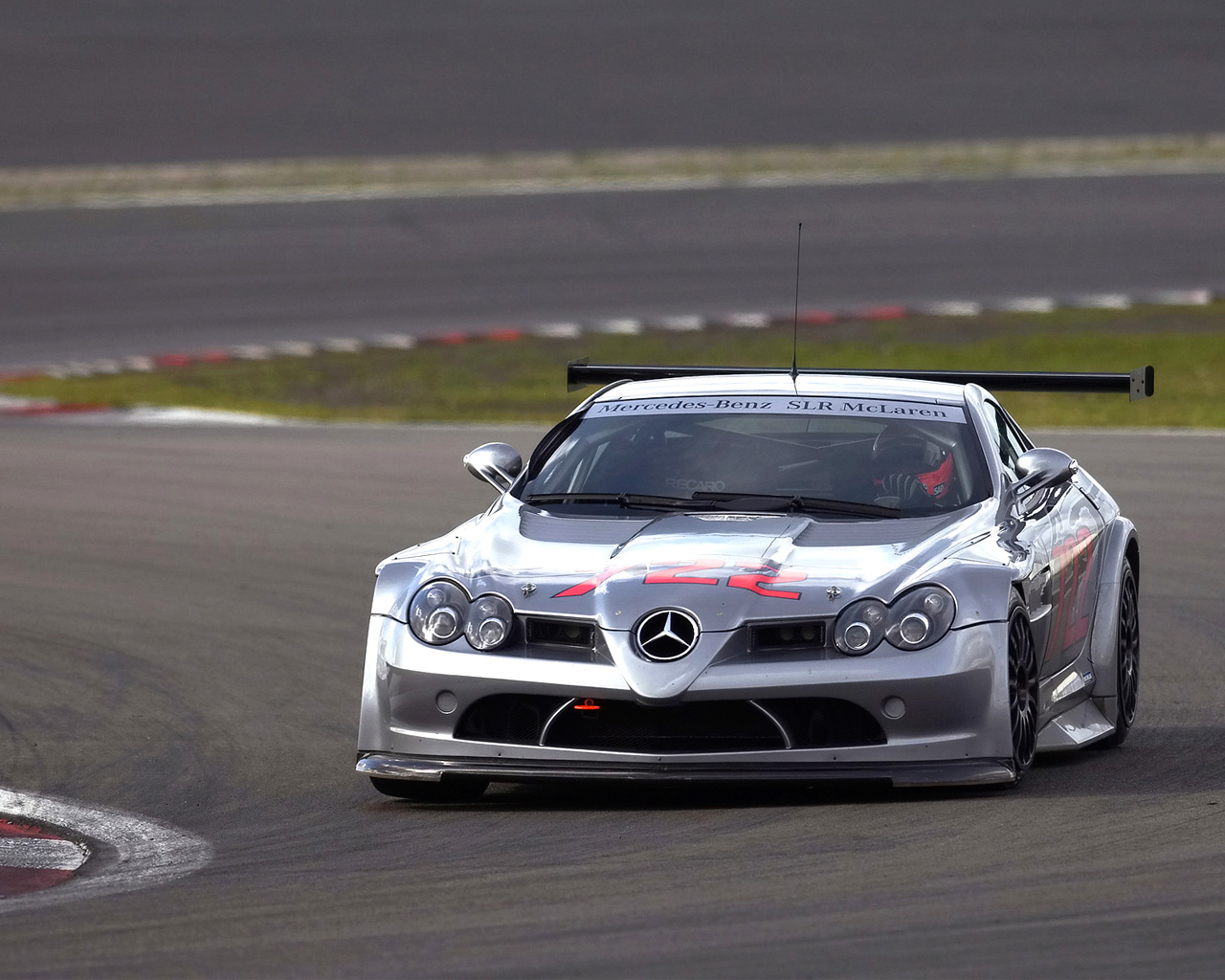 Скачать обои для рабочего стола Mercedes-Benz-McLaren-SLR-722-GT на треке и фото