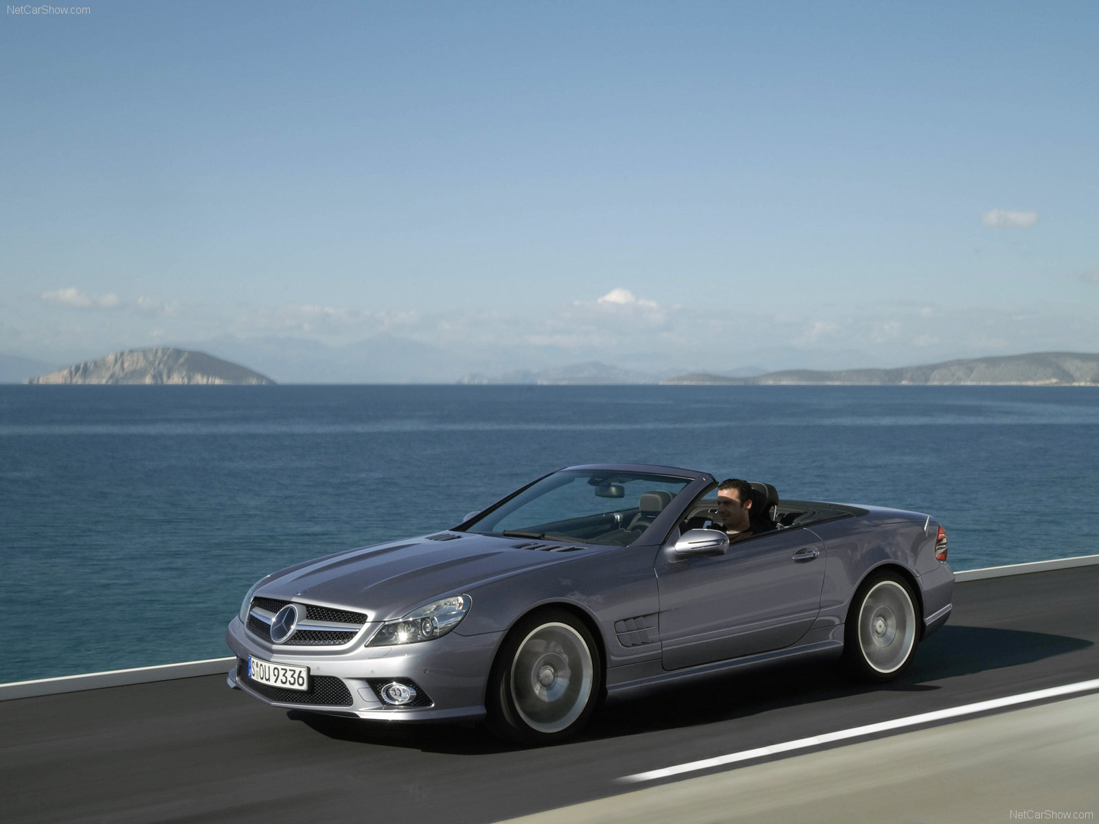 Скачать обои для рабочего стола Mercedes-Benz SL на фоне моря и острова и фото