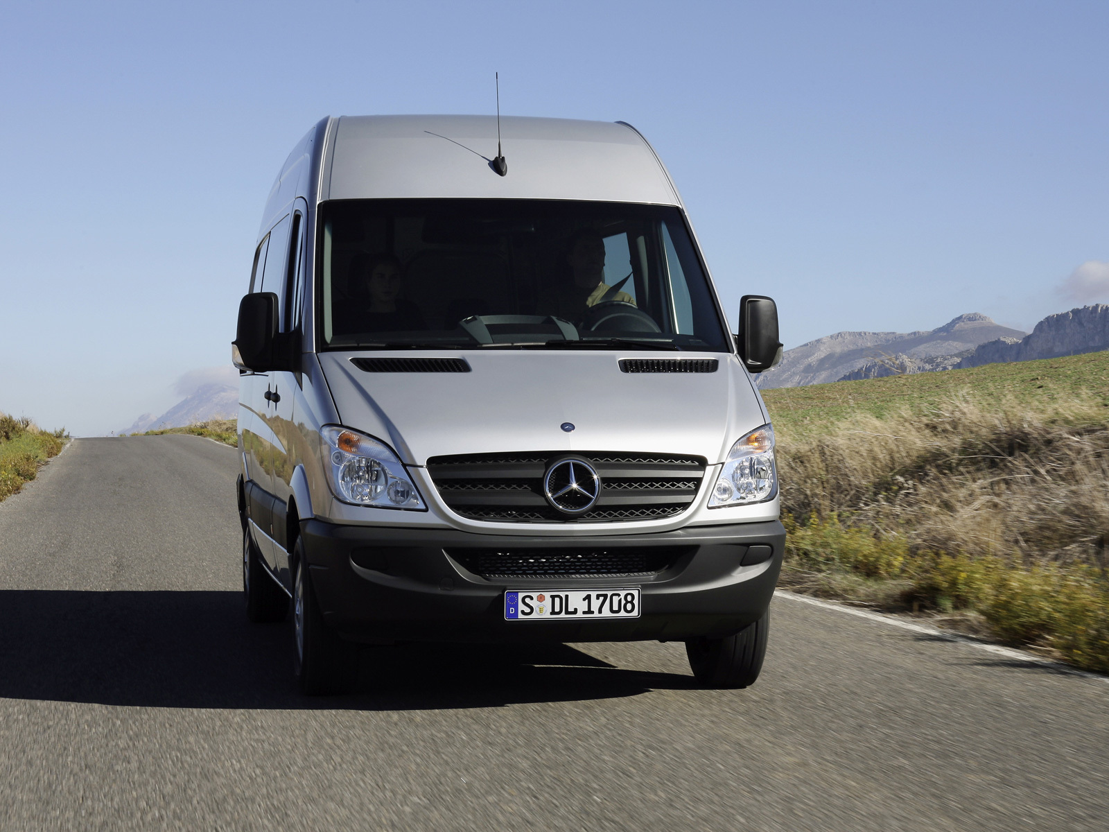 Скачать обои для рабочего стола Mercedes-Benz Sprinter на дороге и фото