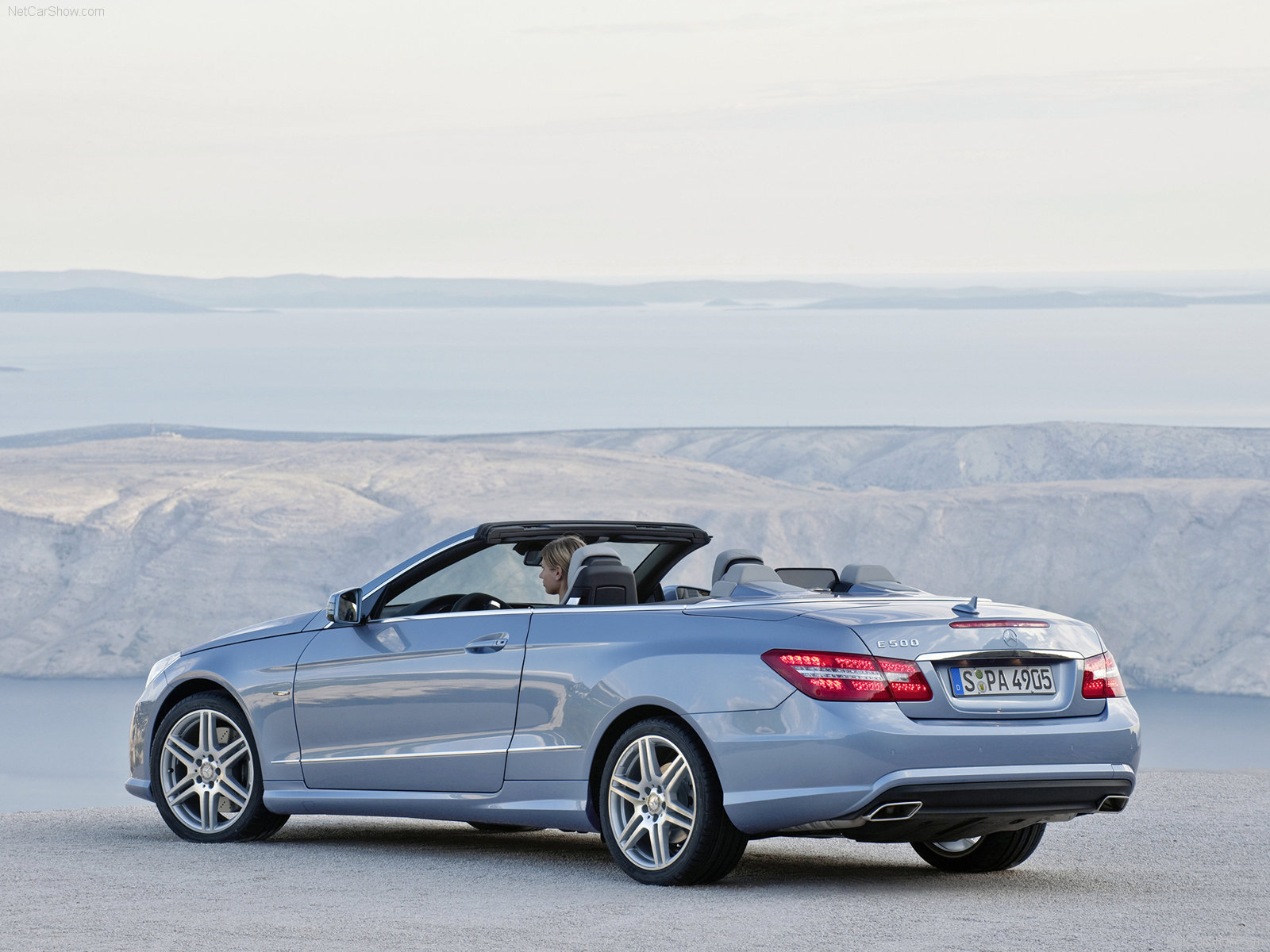 Скачать обои для рабочего стола Mercedes E 500 - голубой кабриолет и фото