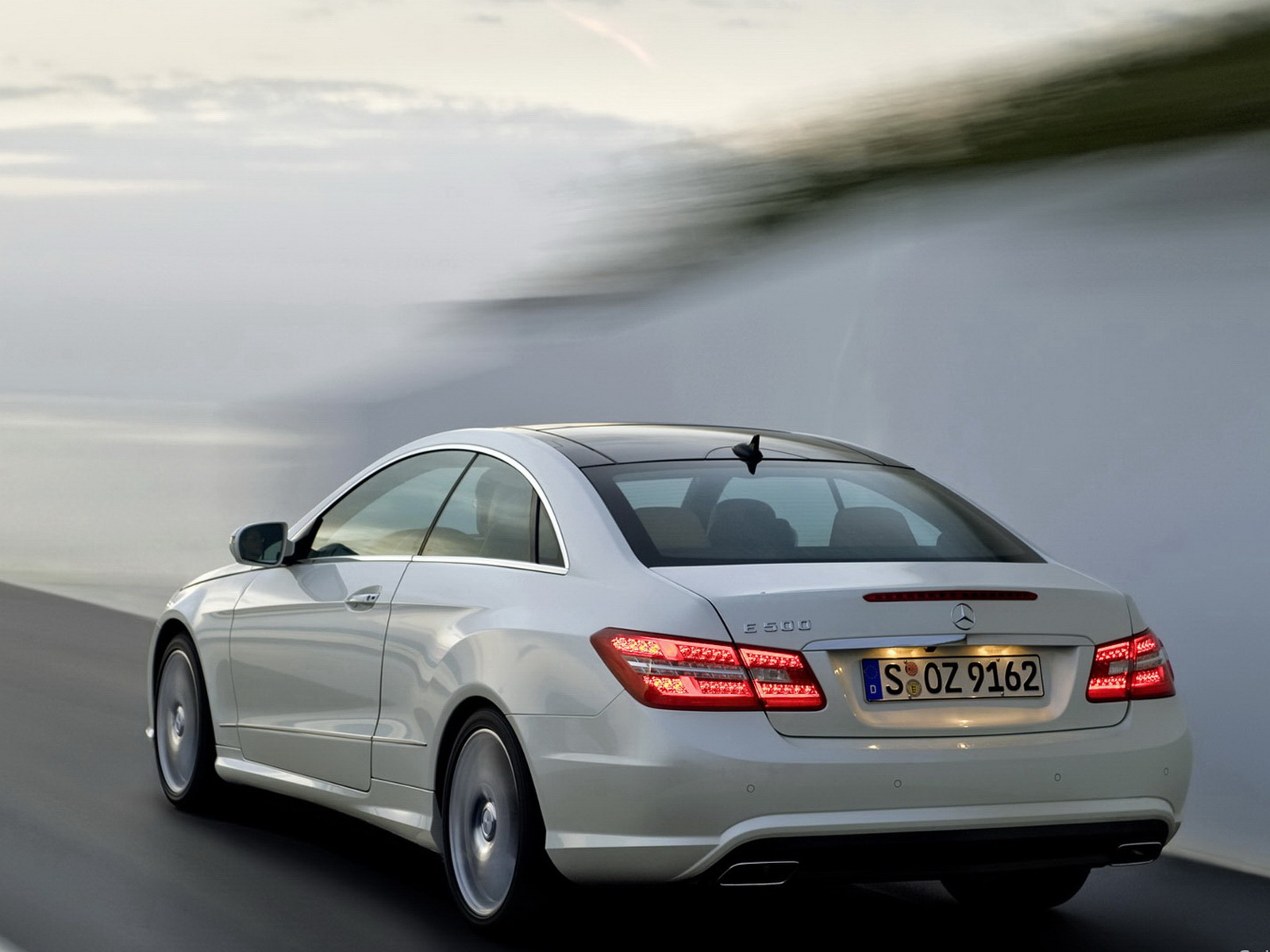Скачать обои для рабочего стола Mercedes E coupe вид с камеры сзади и фото
