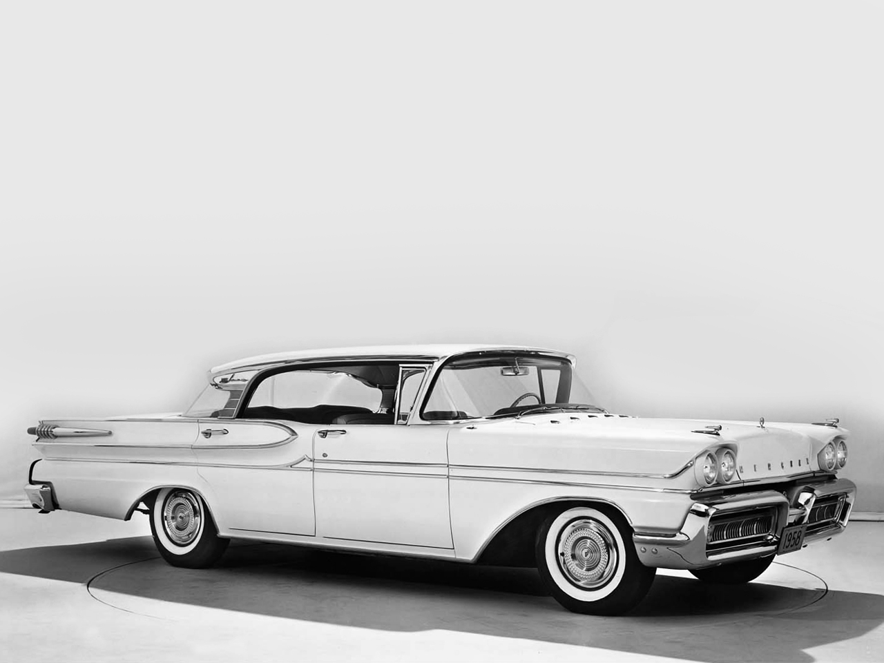 Скачать обои для рабочего стола Mercury Park Lane Phaeton Sedan 1958 бок и фото