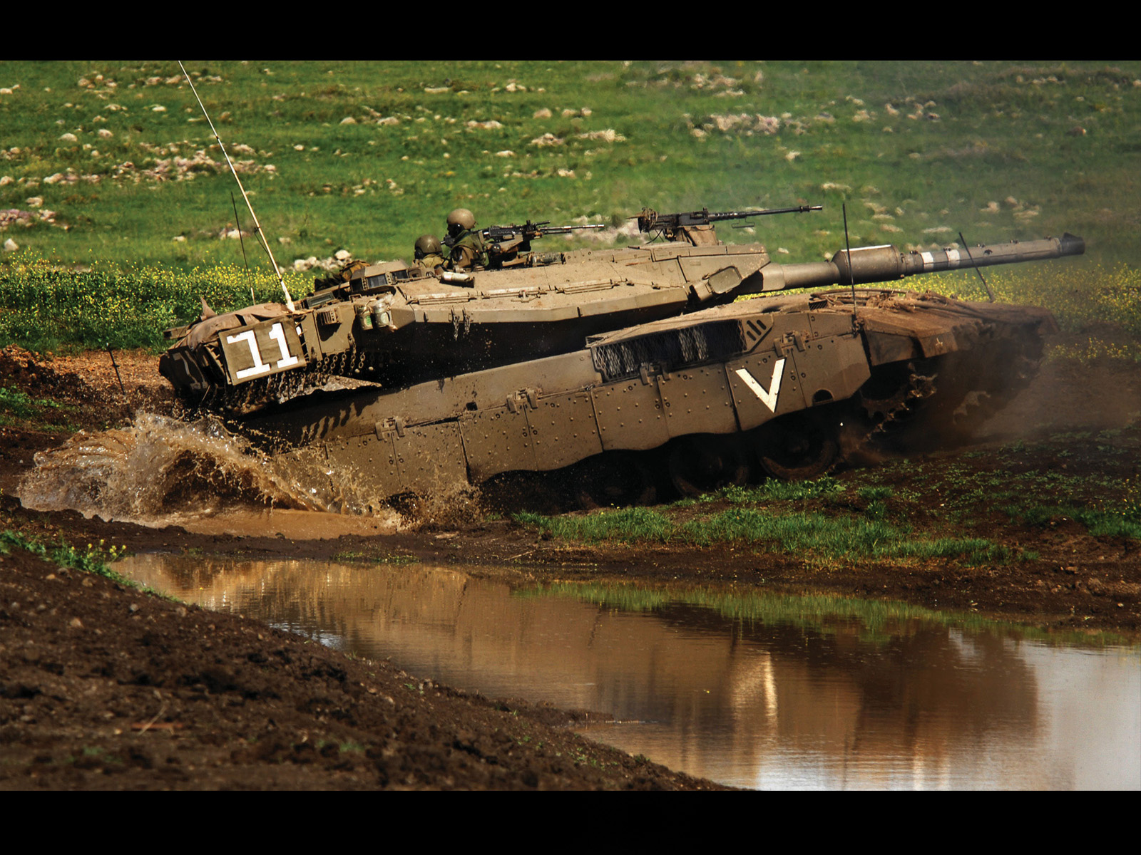 Скачать обои для рабочего стола Меркава едет по грязи и фото