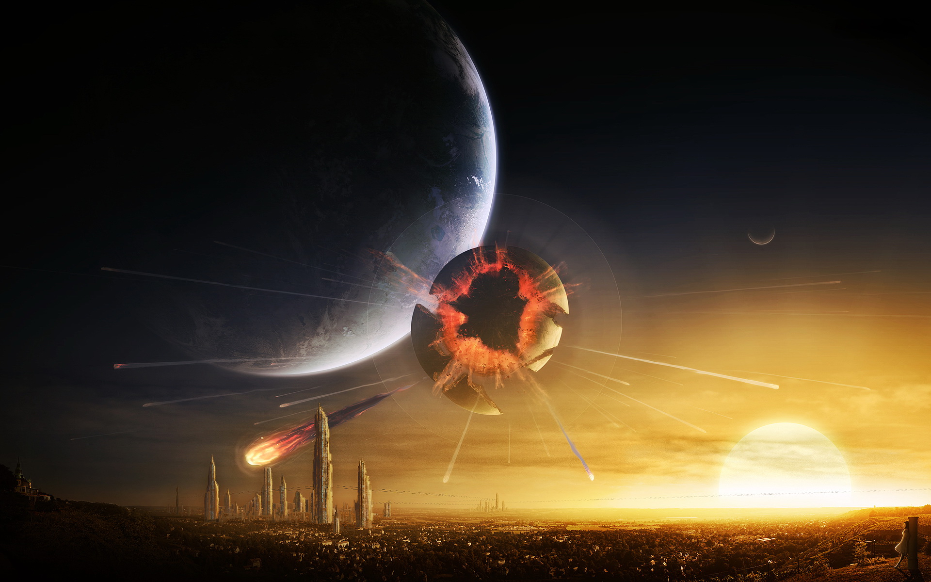 Скачать обои для рабочего стола Метеорит над городом и фото