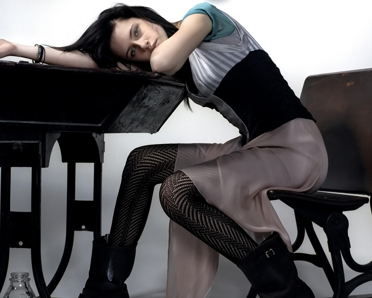 Скачать обои для рабочего стола Милая девушка на стульчике и фото